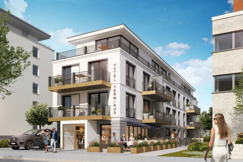„Wir wollten auch architektonisch etwas Anspruchsvolles gestalten“, sagte Ole König über die Baupläne für den Hotelneubau. Das ist gelungen. Der Bau ist an den Bäderstil angelehnt, es dominieren klassische Gestaltungselemente und Materialien. Lassen Sie sich von dem neuen I Love Sylt Hotel Terminus begeistern.