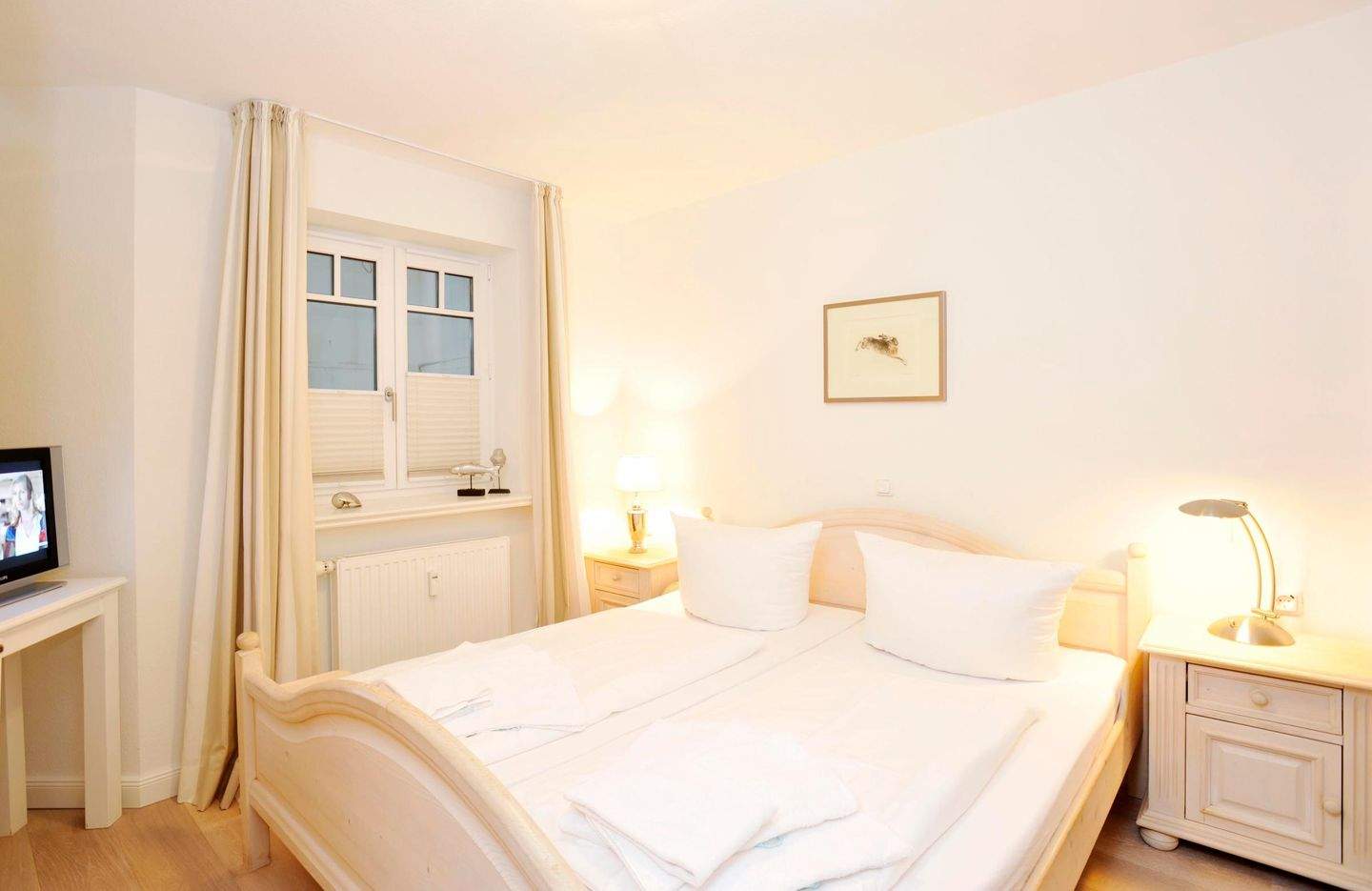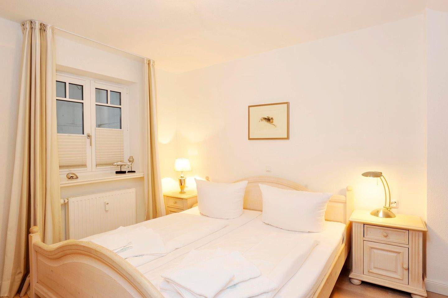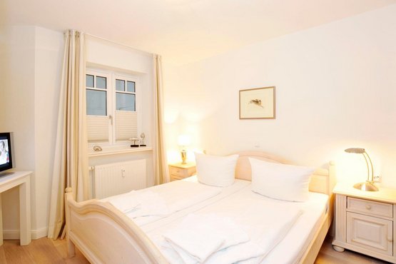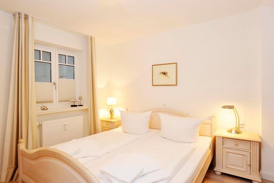 1. Schlafzimmer mit Doppelbett (2x 90x200cm), Kleiderschrank, Kommode und Sessel.