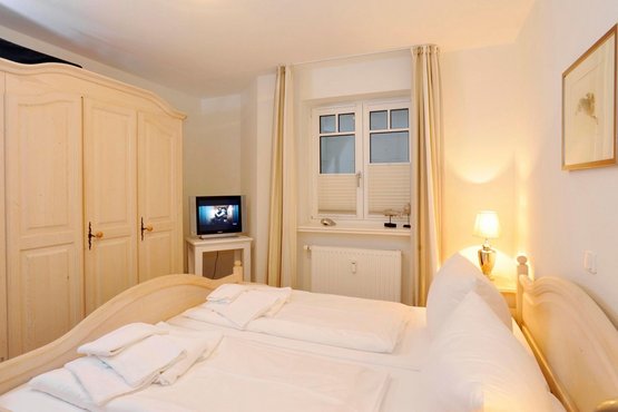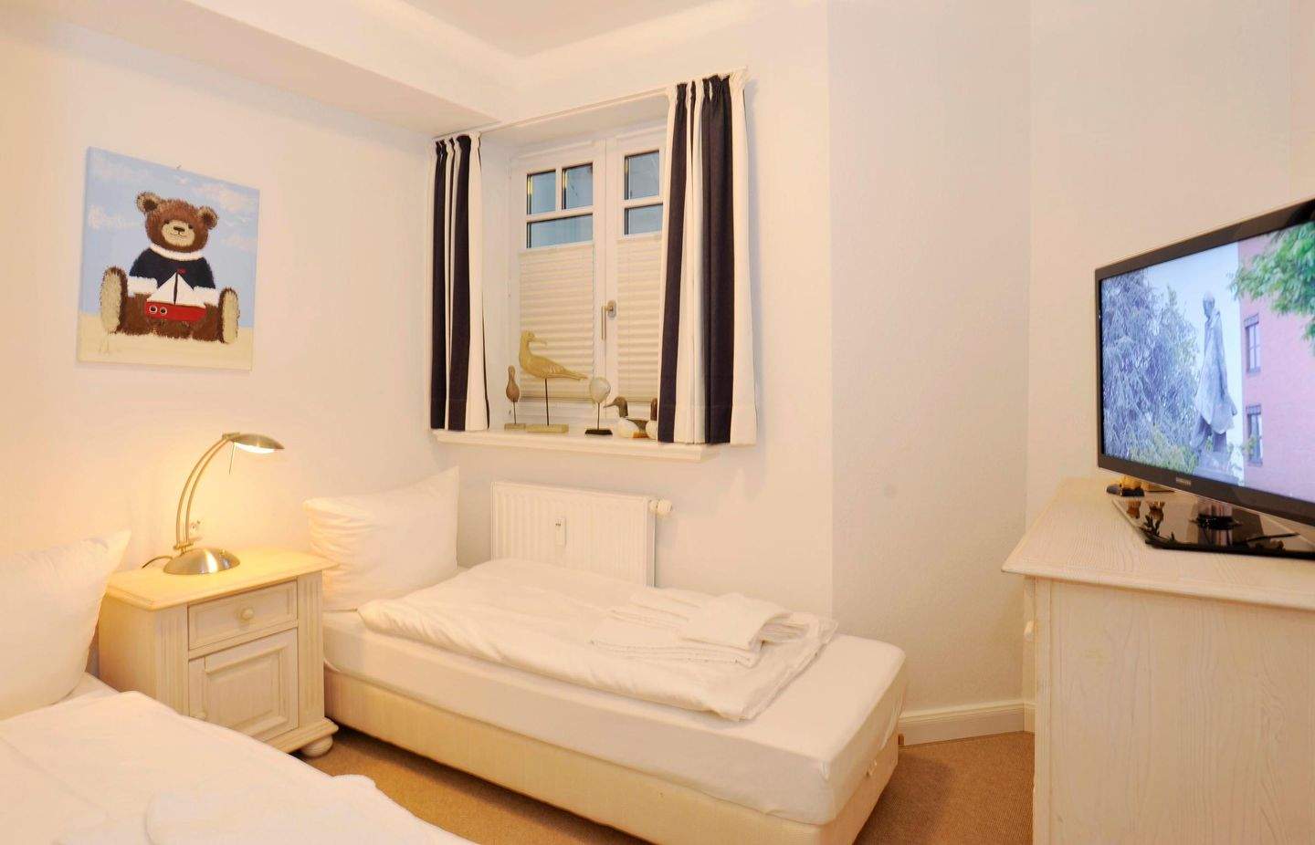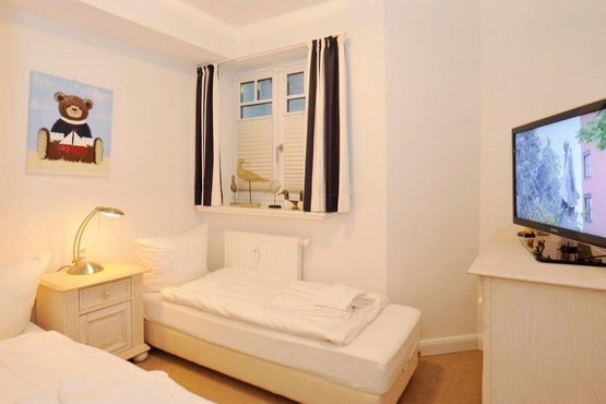 1. Schlafzimmer mit 2 Einzelbetten (je 70x190cm), Kommode und TV.