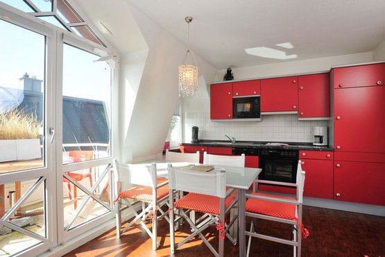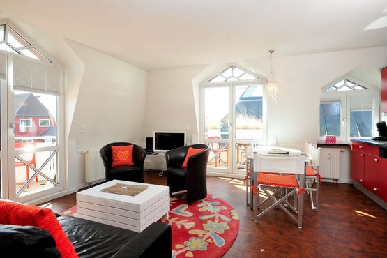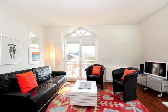 Sehr beliebt wegen der ruhigen Lage trotz Nähe zum Strand und zur Fußgängerzone in Westerland auf Sylt. Mit 3 Balkonen nach Süden und Osten. Nichtraucherwohnung. Wohnzimmer mit ausziehbarem (Schlaf-) Sofa (160x180cm), 2 Sesseln, Esstisch mit 5 Stühlen und TV. Direkter Zugang zum möblierten 1. Balkon nach Süden und zum möblierten 2. Balkon nach Osten.