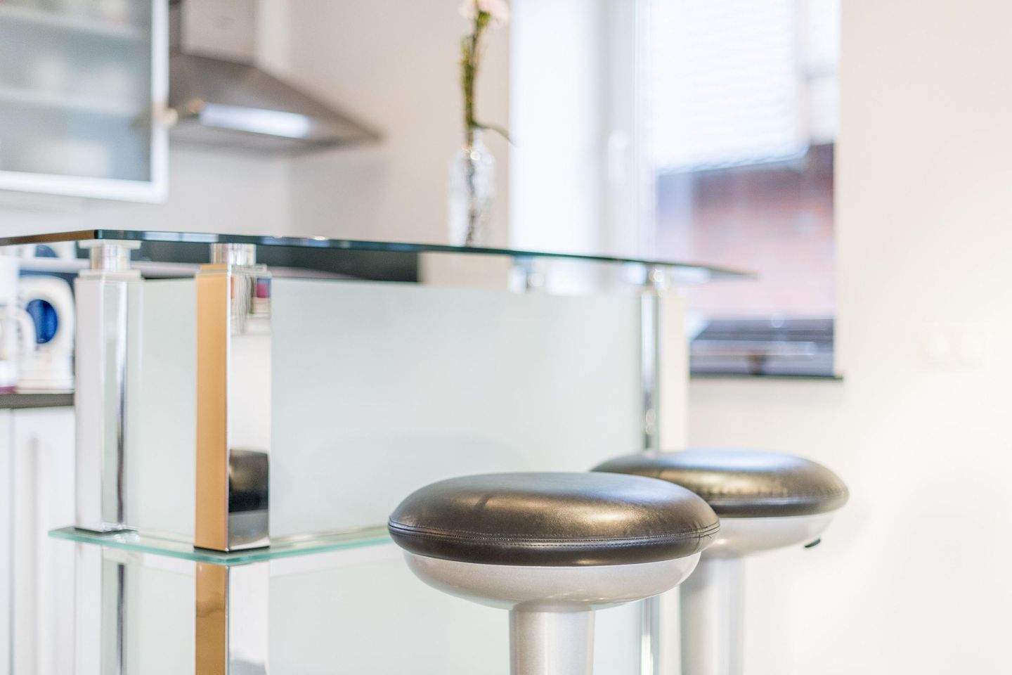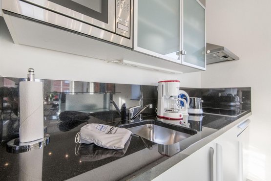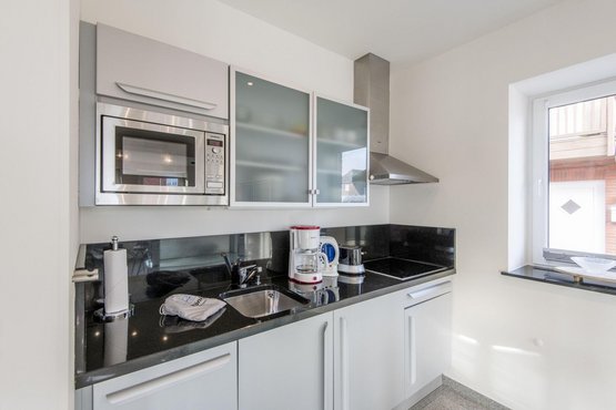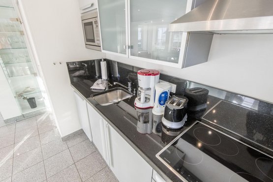 Offene Küche mit Geschirrspüler und dem üblichen Komfort.