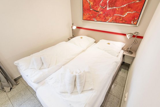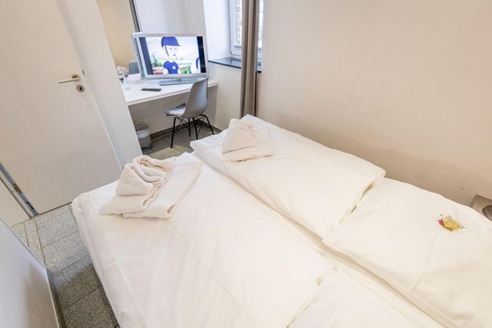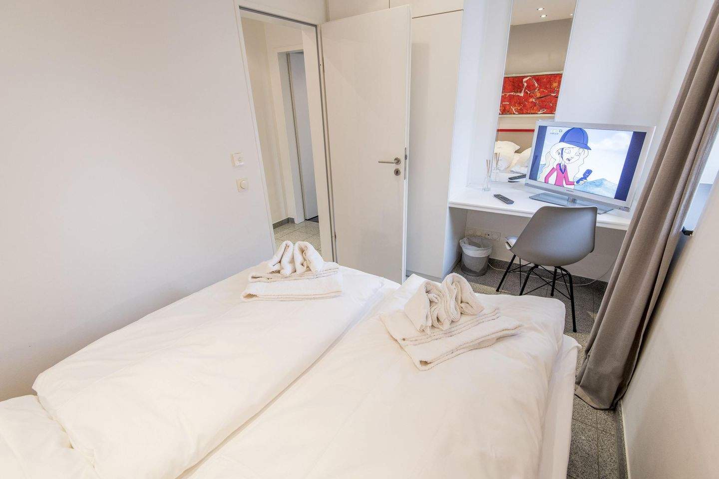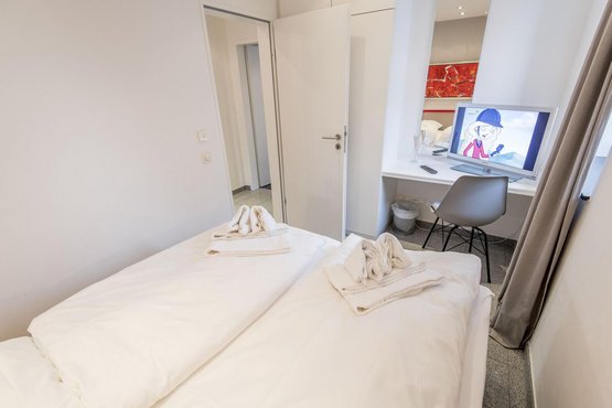 2. Schlafzimmer mit Doppelbett (2x 80x200cm), Kleiderschrank und TV.