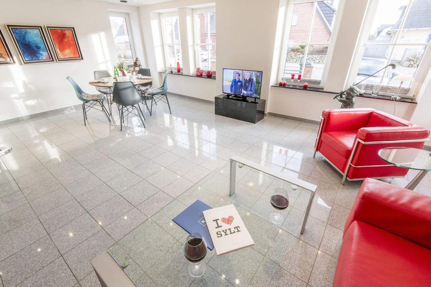 Moderne 3-Zimmer-Ferienwohnung mit ca. 75 m² auf 1 Ebene (EG) für bis zu 4 Personen. Perfekte Urlaubslage direkt hinter den Dünen Westerlands und nah zur Fußgängerzone Friedrichstraße in Westerland auf Sylt. Mit großzügigem gemeinschaftlichen Garten mit Strandkorb. Rauchen ist nicht gestattet. Haustiere willkommen.
