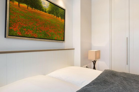 2. Schlafzimmer mit Doppelbett (2x 80x200cm), Einbauschrank und TV.