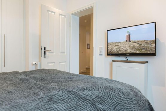 1. Schlafzimmer mit Doppelbett (2x 90x200cm), Einbauschrank und TV.