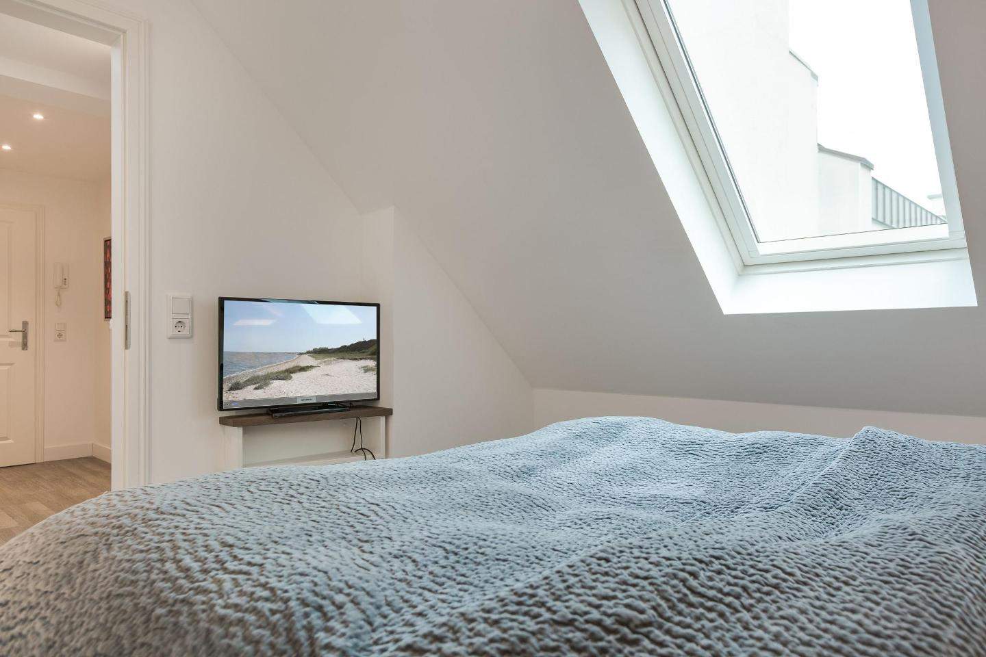 Schlafzimmer mit Doppelbett (2x 80x200cm) und TV.