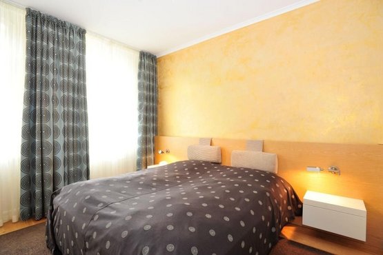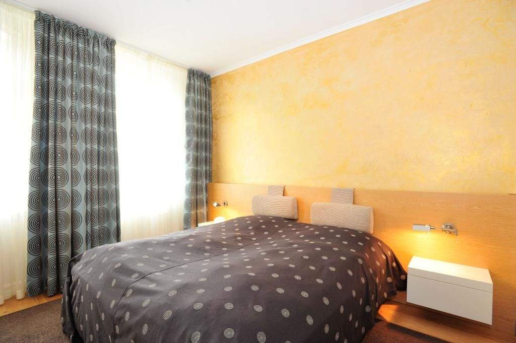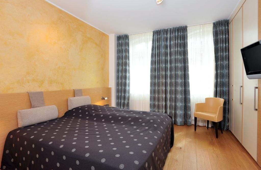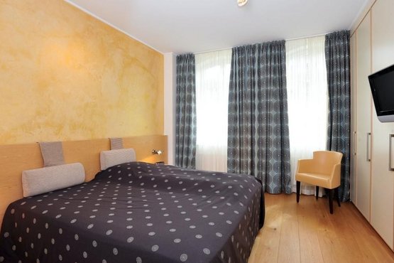 1. Schlafzimmer mit Doppelbett (2x 90x200cm), TV und Einbauschrank.