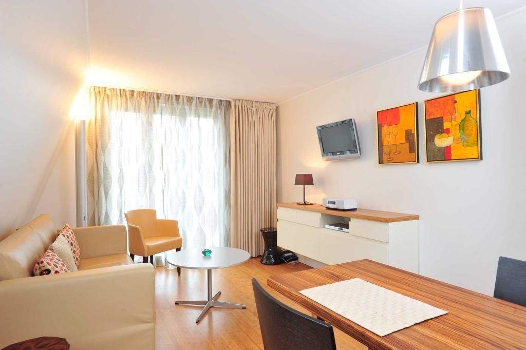 Renovierte Gründerzeitvilla im Bäderstil. Genießen Sie aller höchsten Komfort und die strand- und innenstadtnahe Lage in Westerland auf Sylt. Fußgängerzone Friedrichstraße in direkter Nähe. Haustiere willkommen. Wohnzimmer mit Sofa, Sessel, modernem TV und Esstisch für 2 Personen.