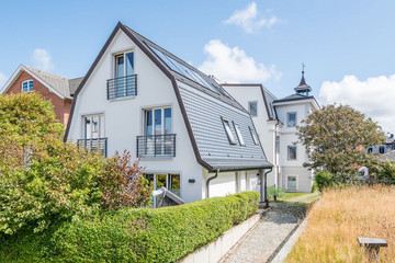 Renovierte Gründerzeitvilla im Bäderstil. Genießen Sie den aller höchsten Komfort und die strand- und innenstadtnahe Lage in Westerland auf Sylt. Fußgängerzone Friedrichstraße, Fisch Gosch und das Sushi Restaurant Moin in direkter Nähe. Nichtraucherwohnung. Haustiere willkommen. Wohnzimmer mit Sofa, Sesseln, modernem TV und Esstisch für 4 Personen. Direkter Zugang zur Terrasse nach Westen mit Strandkorb.