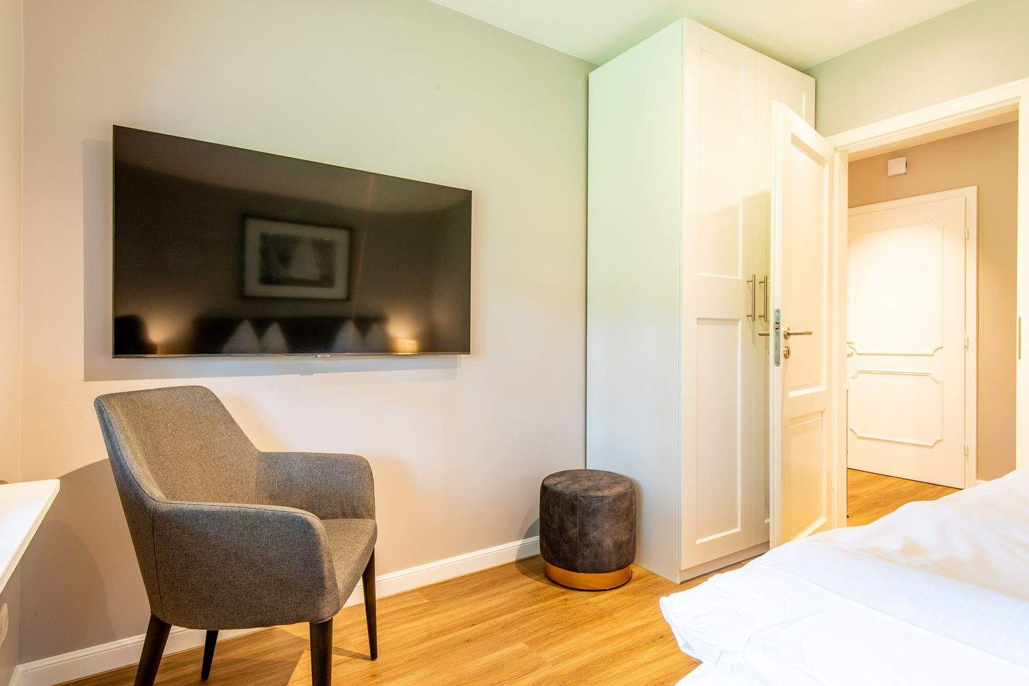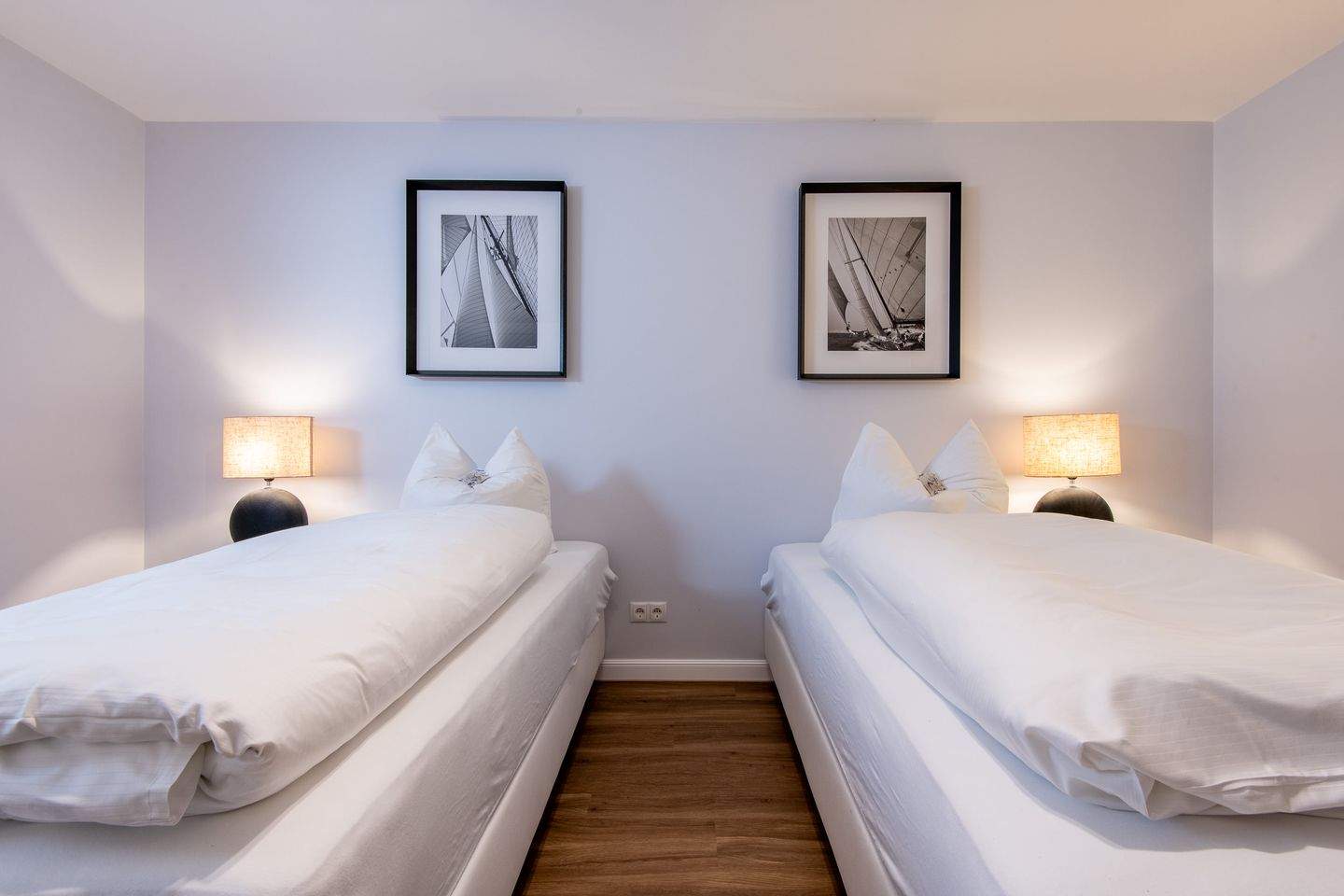 2. Schlafzimmer mit Einzelbetten (90x200 cm) mit der Möglichkeit die Betten auch zusammenzustellen, Kleiderschrank und TV.