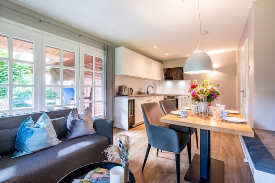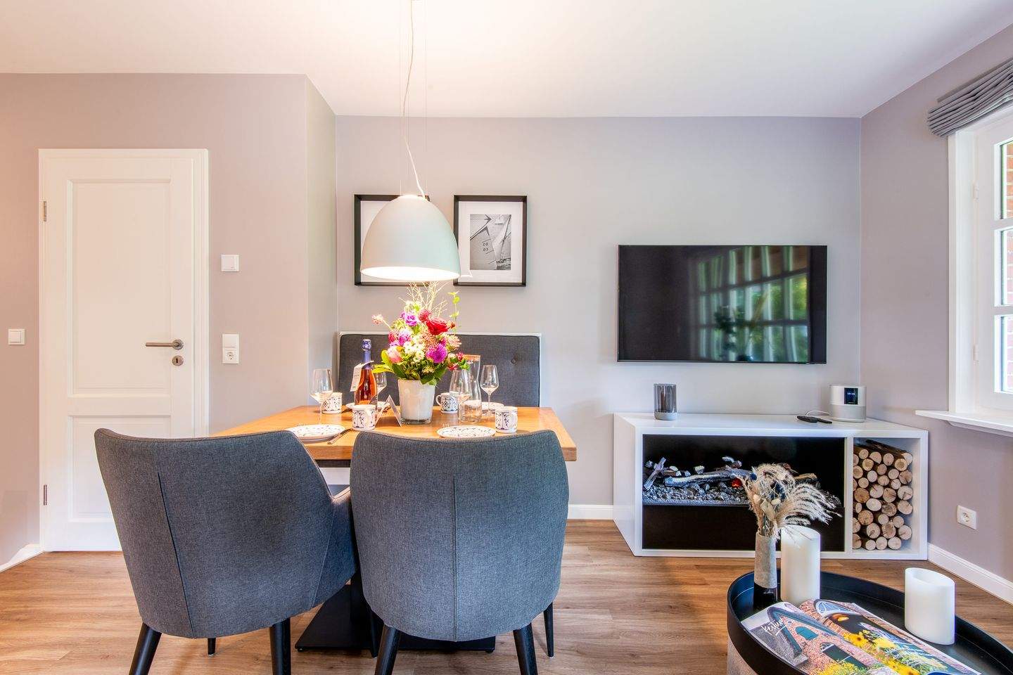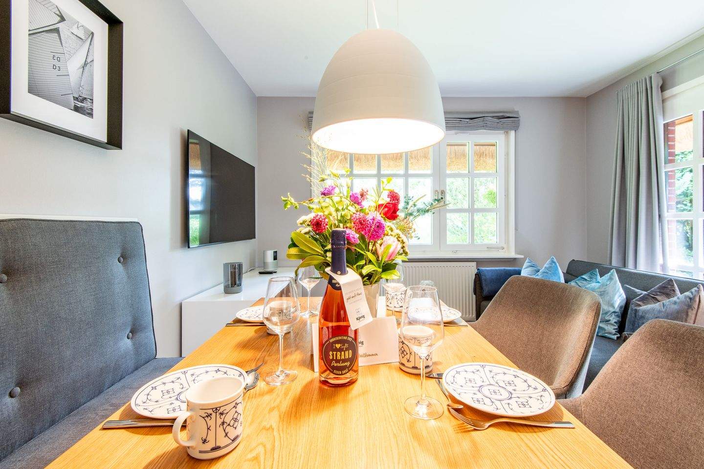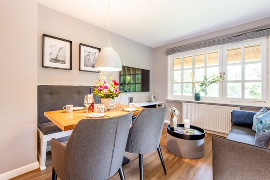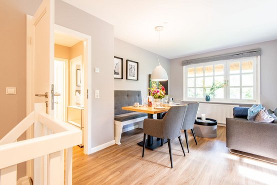 Kernsanierte 3-Zimmer-Ferienwohnung unter Reet, die sich über zwei Ebenen erstreckt und eine Gesamtfläche von ca. 72 qm bietet. Die Wohnung ist ideal für bis zu 4 Personen und bietet einen charmanten Rückzugsort für Ihren erholsamen Urlaub.