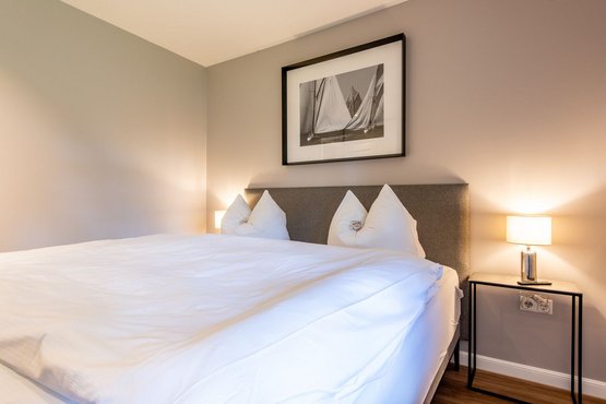 1. Schlafzimmer mit Doppelbett (180x200 cm) mit Kleiderschrank und TV.