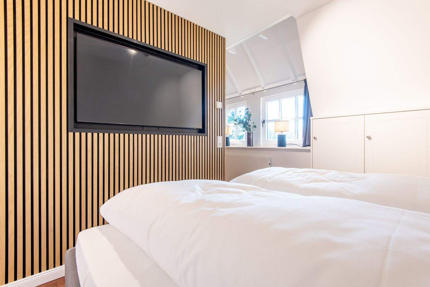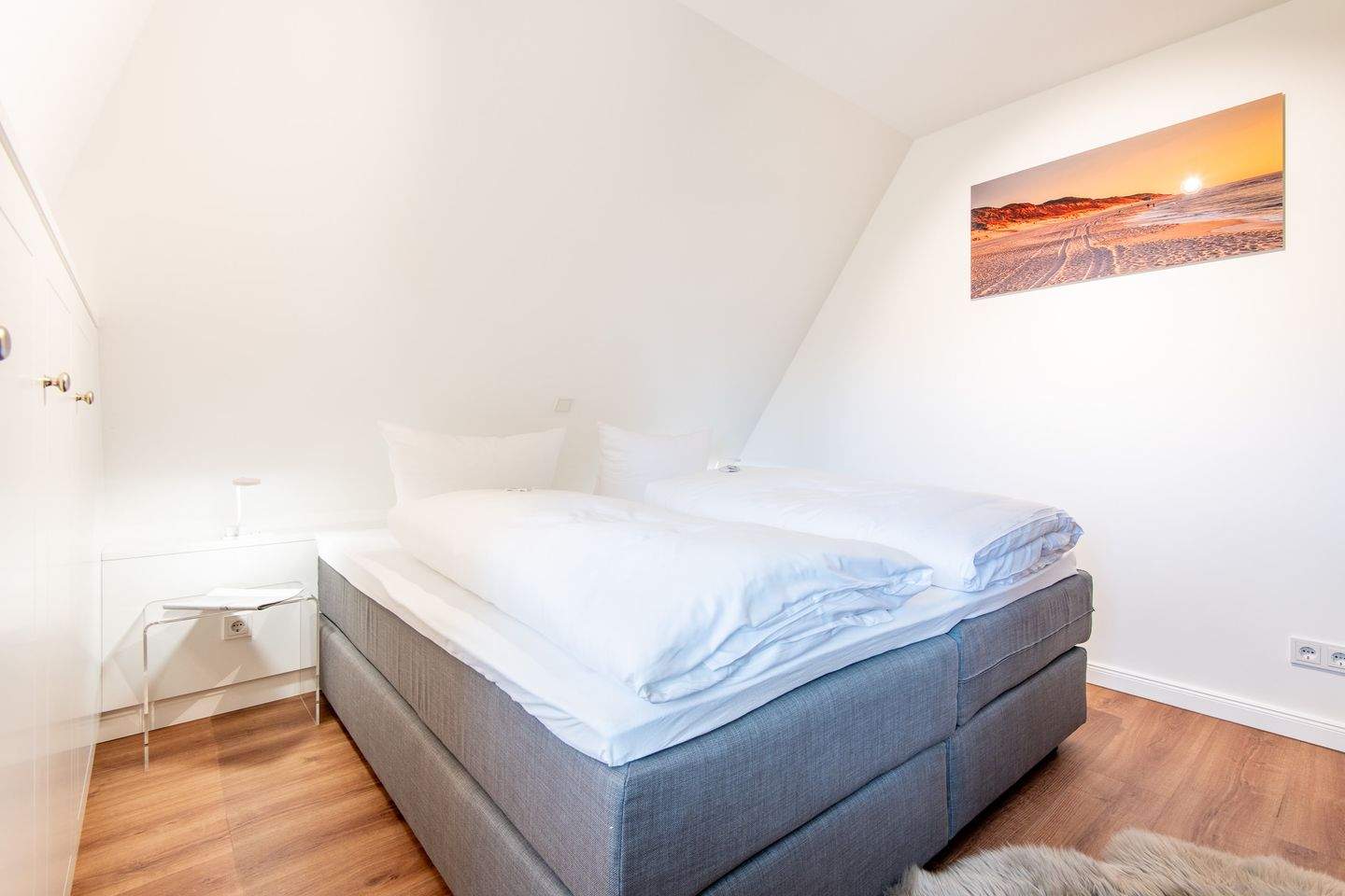 Ein weiterer Raum dient als Ruheraum und ist mit zwei Einzelbetten ausgestattet. Dieser Bereich eignet sich perfekt für Kinder oder zusätzliche Gäste.