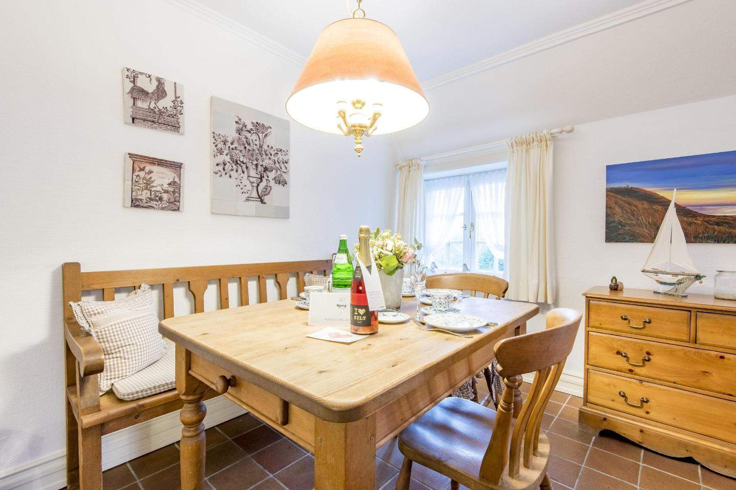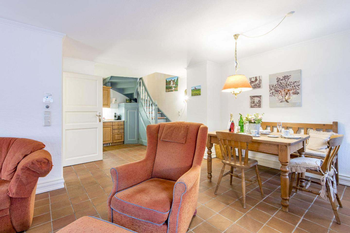 Das Domizil bietet Ihnen jede Menge Gemütlichkeit und Platz zum Entspannen. Der eigene Garten mit Terrasse lädt zu wunderschönen Sonnenstunden ein und Kinder können ungestört spielen. Die Innenstadt ist fußläufig oder mit dem Fahrrad problemlos erreichbar. Hunde sind herzlich willkommen. Wohn-Essbereich mit Sofa, Sessel und TV. Direkter Zugang zum schön eingewachsenem Gartenteil mit sonniger, möblierter Terrasse und Strandkorb. (April-Oktober)