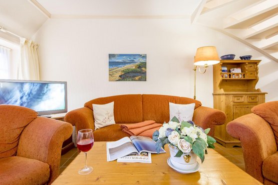 Sylter Friesenhaus 'Käpt´n Hahn' mit ca. 55 m² auf zwei Ebenen (EG,OG) für bis zu 2 Personen. Zentrale und strandnahe Lage in Westerland auf Sylt.
