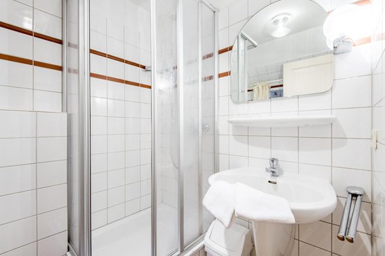 1. Badezimmer (Duschbad) mit Dusche und Tageslicht.