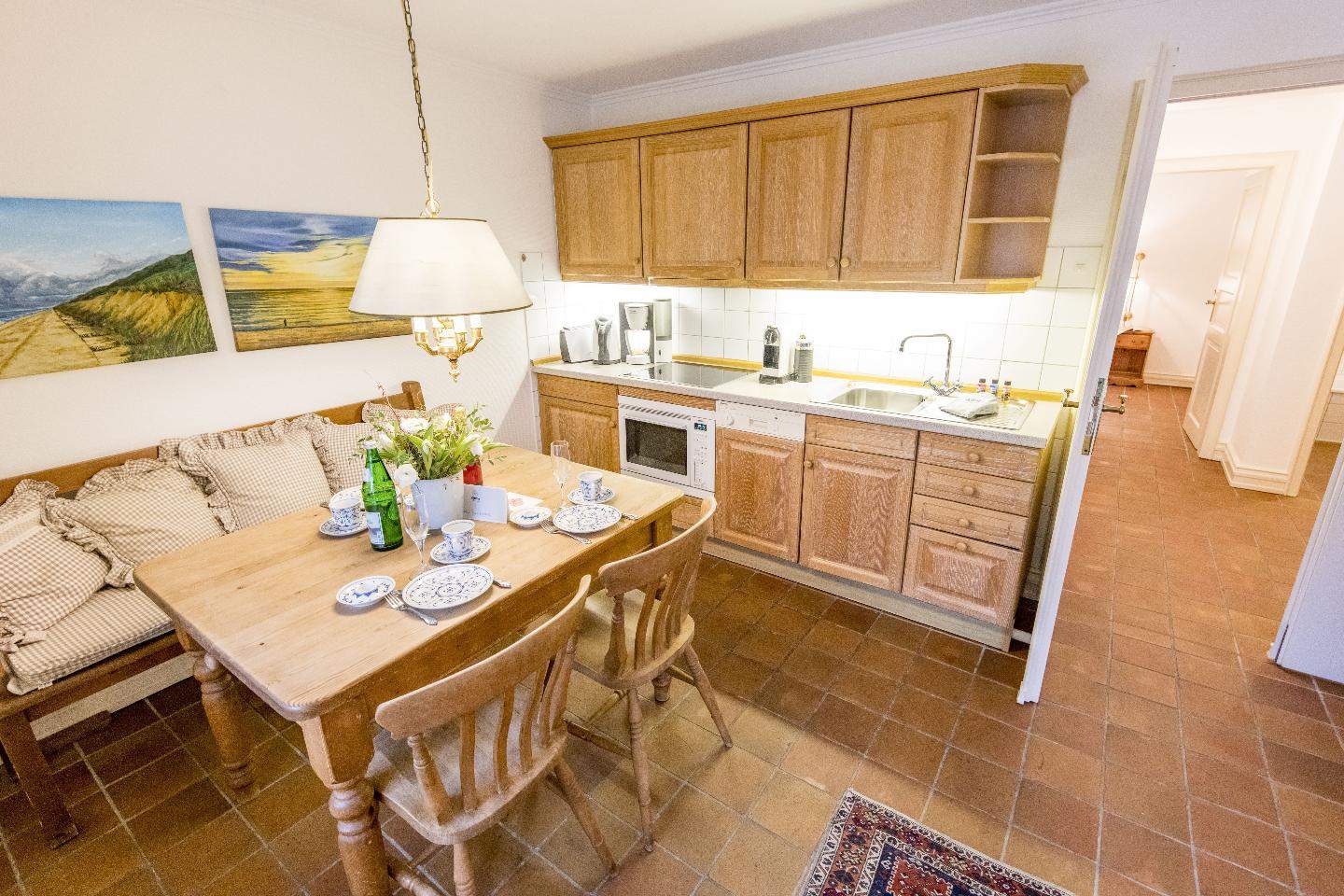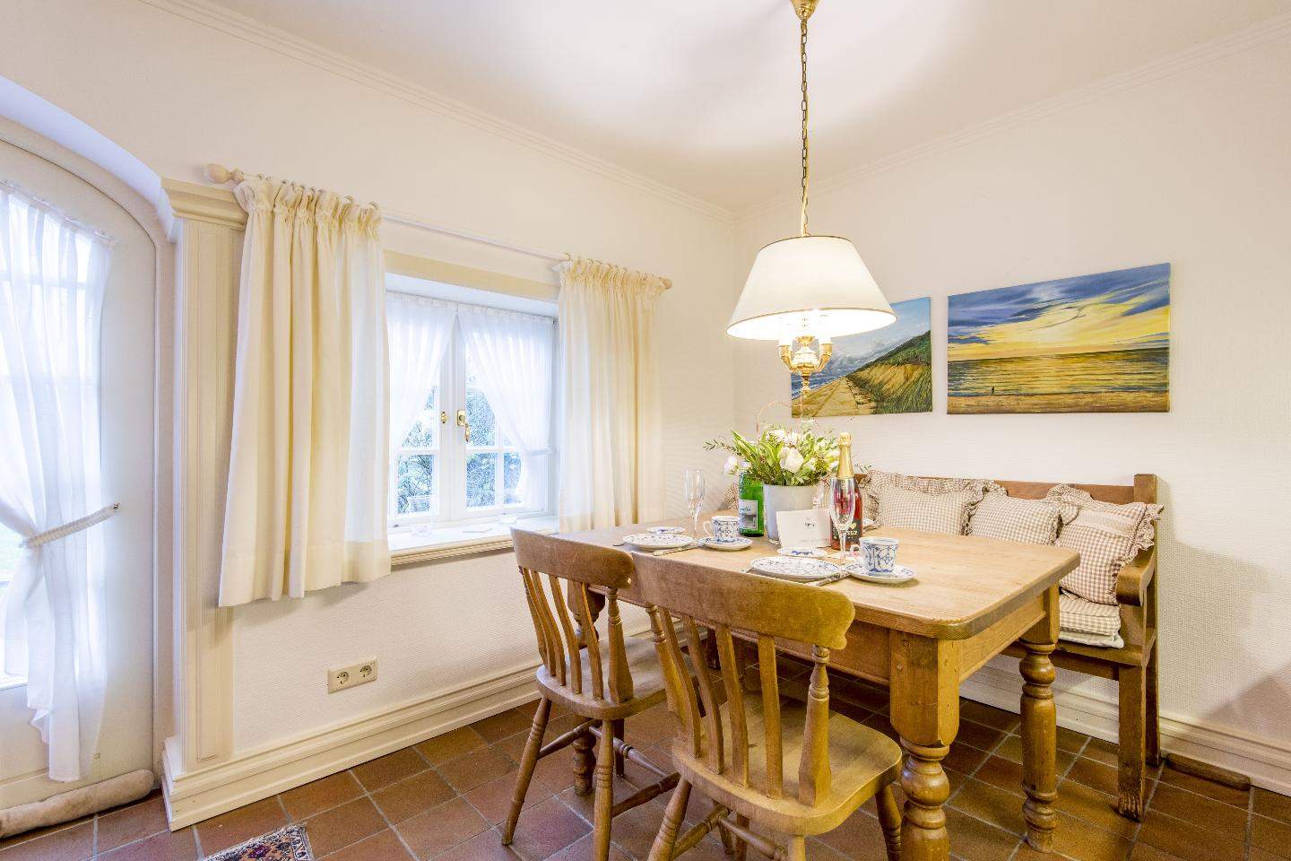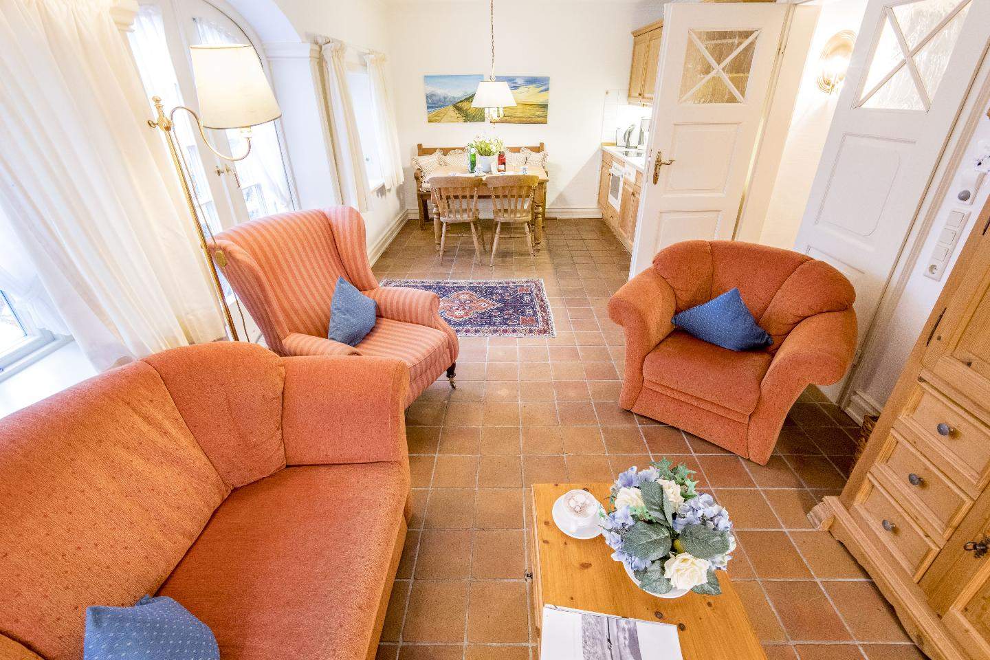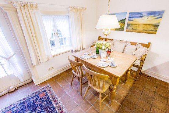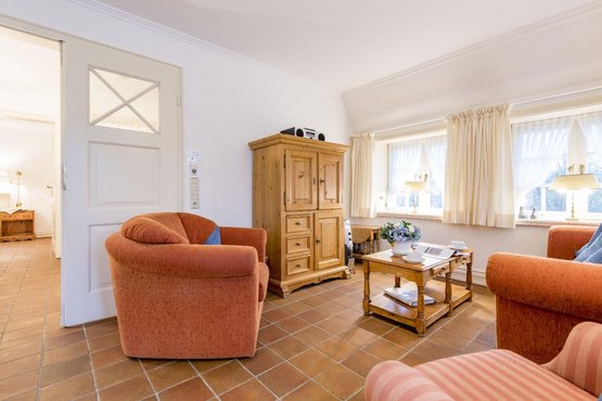 Ferienwohnung unter Reet in guter Lage von Westerland. Zum Ortskern sowie zum Strand sind es nur wenige Gehminuten. Die sonnige Terrasse mit Strandkorb bietet viel Platz, um die Seele baumeln zu lassen. Hunde sind willkommen. Großzügiger Wohn- und Essbereich mit Sofa, TV und gemütlicher Essecke für 3 Personen. Direkter Zugang zur möblierten, sonnigen Terrasse.