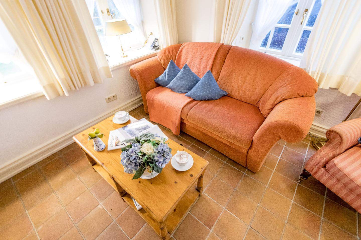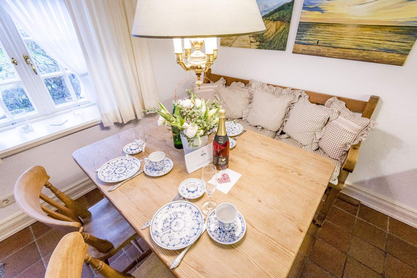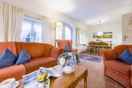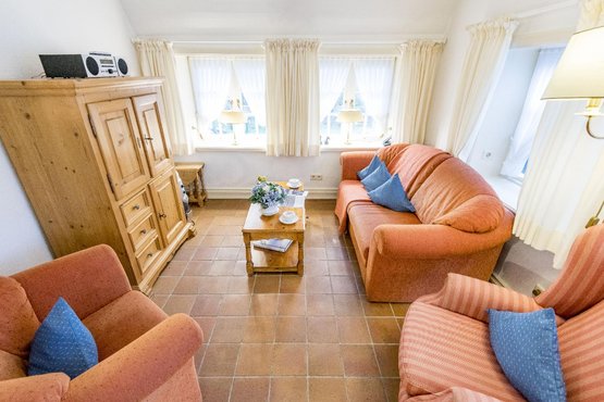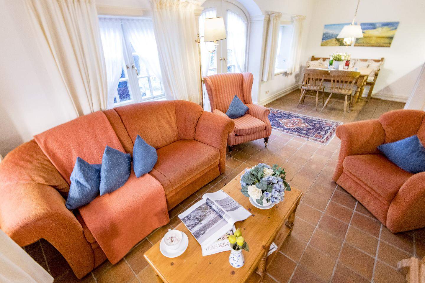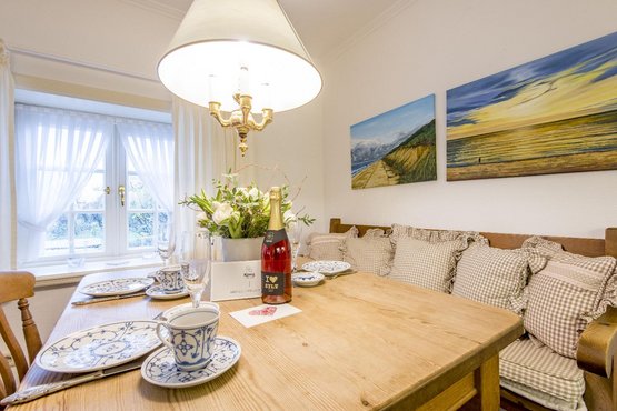 Ferienwohnung unter Reet in guter Lage von Westerland. Zum Ortskern sowie zum Strand sind es nur wenige Gehminuten. Die sonnige Terrasse mit Strandkorb bietet viel Platz, um die Seele baumeln zu lassen. Hunde sind willkommen. Großzügiger Wohn- und Essbereich mit Sofa, TV und gemütlicher Essecke für 3 Personen. Direkter Zugang zur möblierten, sonnigen Terrasse.