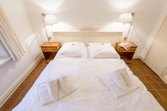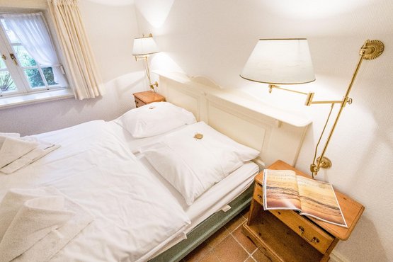 1. Schlafzimmer mit Doppelbett (2x90x200cm) mit Tischlereinbauten.