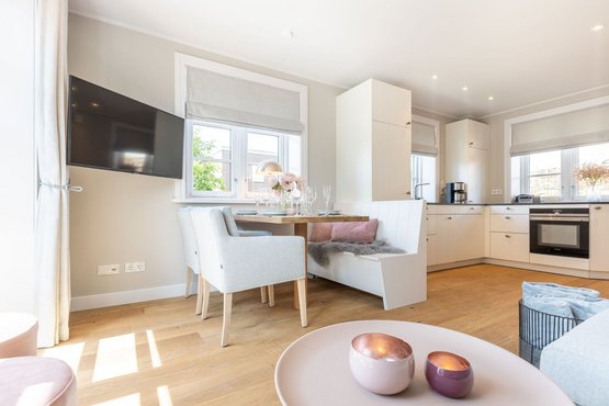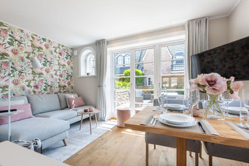 Exklusives Endhausteil "Smucke Süster" mit ca. 93 m² über 4 Ebenen (EG, UG, OG, DG) für 4+2 Personen. Das Domizil bietet durch und durch Luxus in allen Bereichen und besticht durch seine ruhige und strandnahe Lage. Der eigene Garten nach Süden mit möblierter Süd-Terrasse lädt zu wunderschönen Sonnenstunden ein. Der Weststrand und die Innenstadt sind fußläufig erreichbar. Zur abendlichen Entspannung dient eine Dampfdusche. Hunde sind herzlich willkommen und finden einen komplett eingezäunten Garten vor. Nichtraucherhaus.