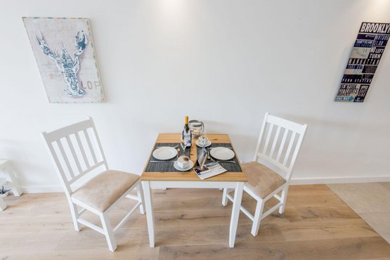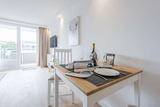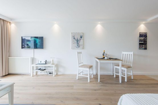 Moderne 1-Zimmer-Ferienwohnung im 'Hanseatenhaus' mit ca 42 m² auf 1 Ebene (1. Etage, mit Fahrstuhl) für bis zu 2 Personen.
