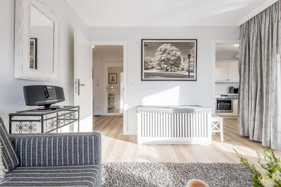 Helle 2-Zimmer-Ferienwohnung im 'Haus Ankerlicht' mit ca. 44 m² auf 1 Ebene (1. Etage, mit Fahrstuhl) für bis zu 2 Personen.