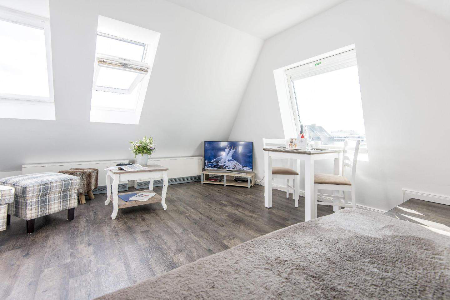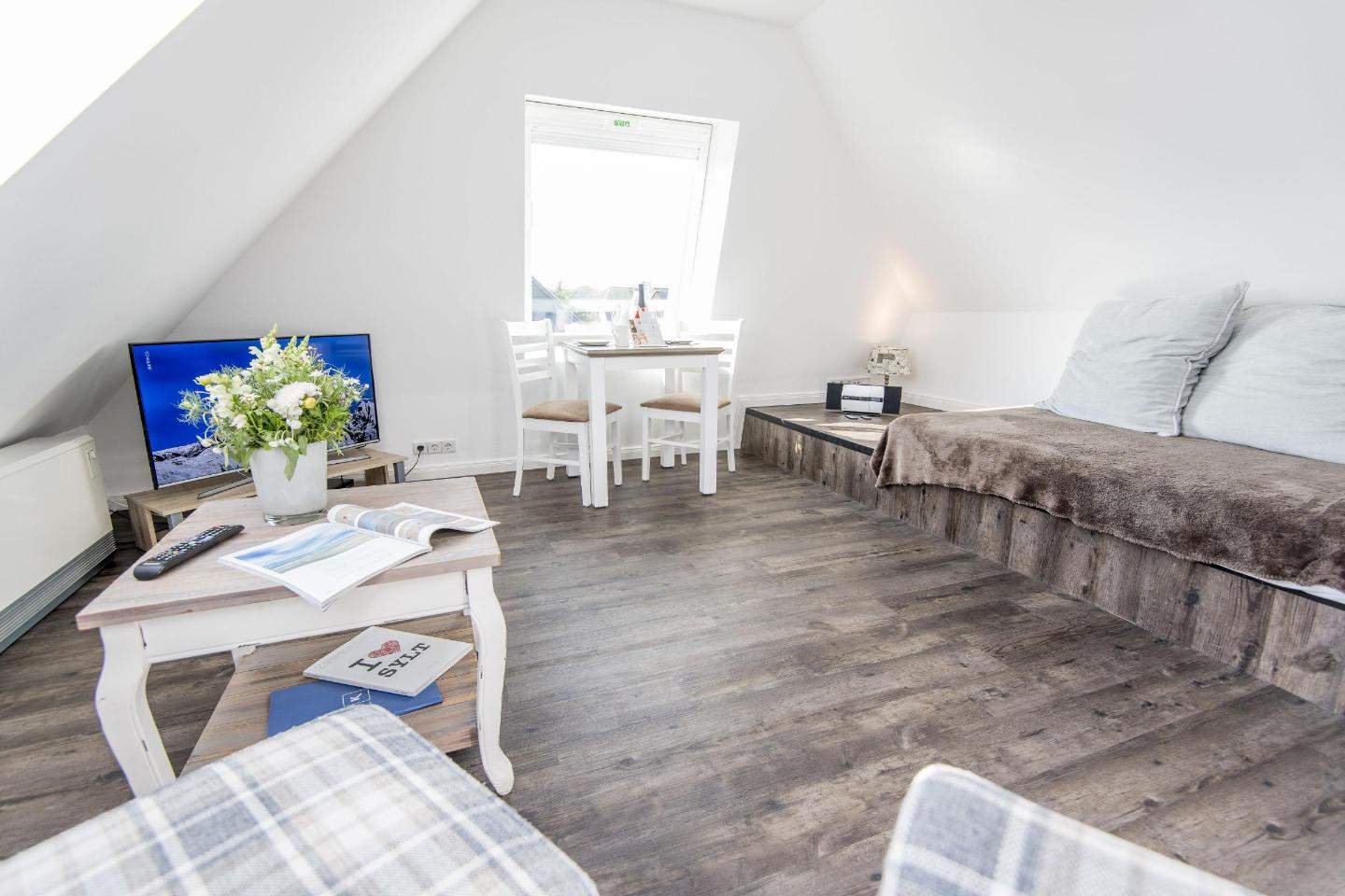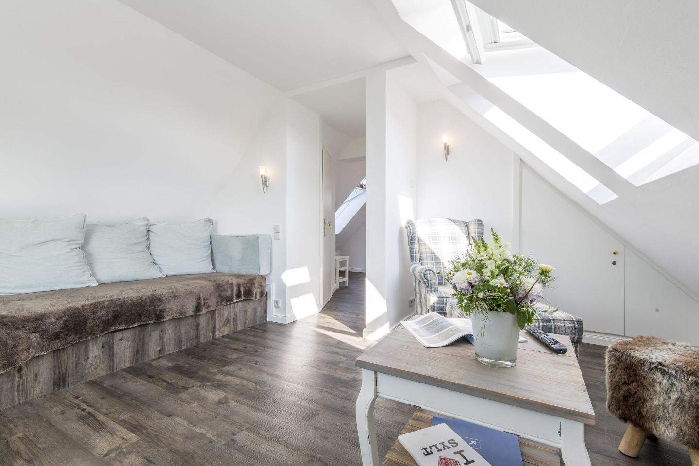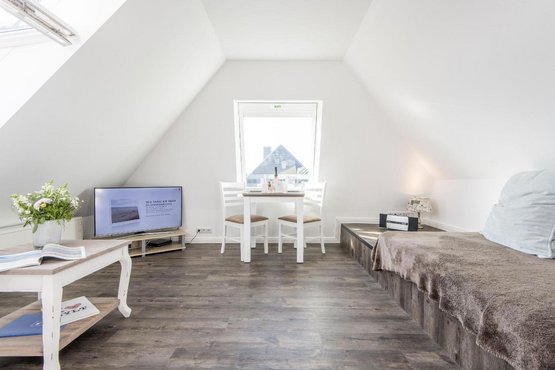 Bezaubernde 2-Zimmer-Ferienwohnung im 'Haus Christof' mit ca. 38 m² auf einer Ebene (DG) für bis zu 2 Personen. Sehr strandnah und ruhig gelegen im Herzen von Wenningstedt auf Sylt. Angesagte Restaurants und Fischbuden, sowie Geschäfte des täglichen Bedarfs in direkter Nähe. Nichtraucherwohnung.