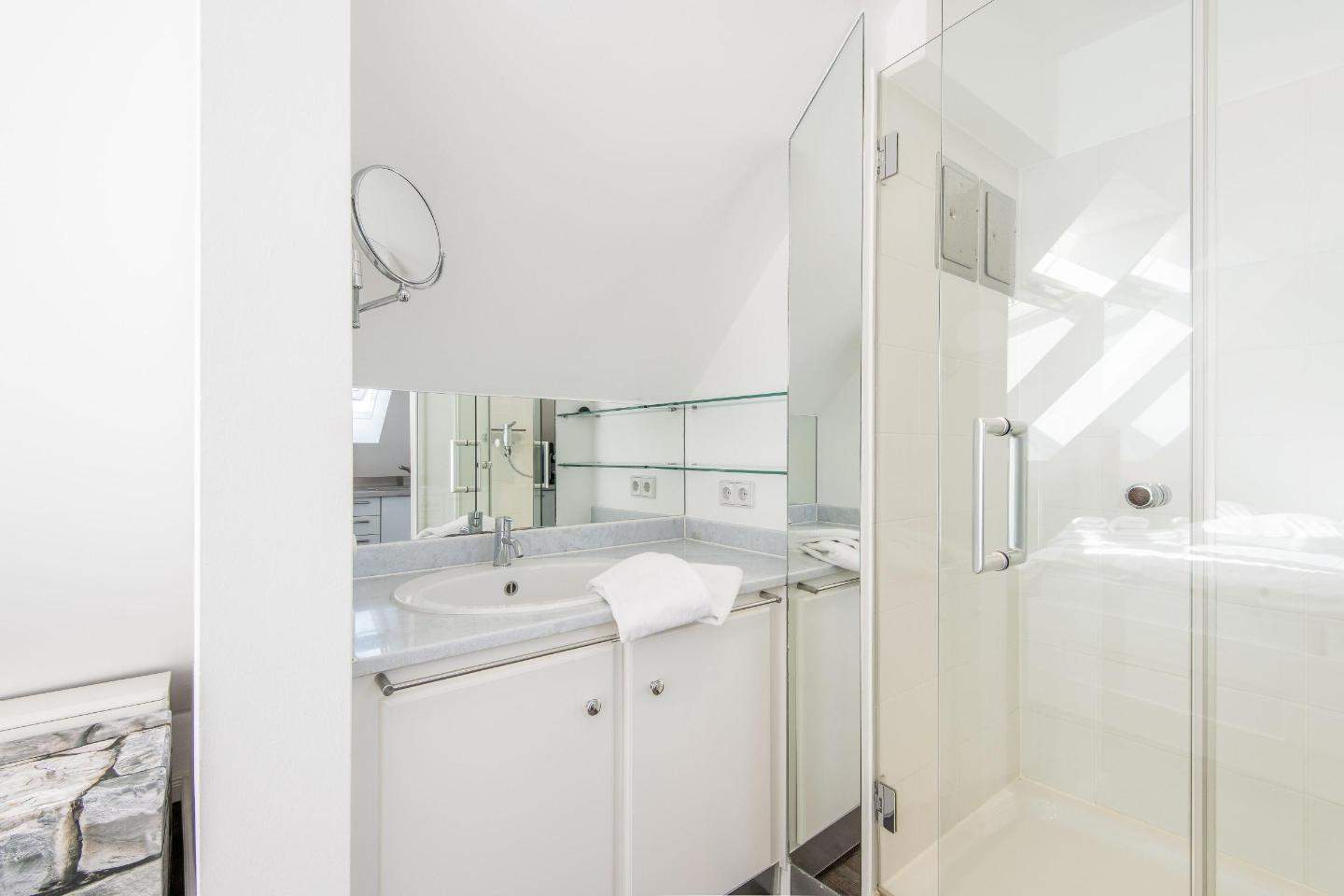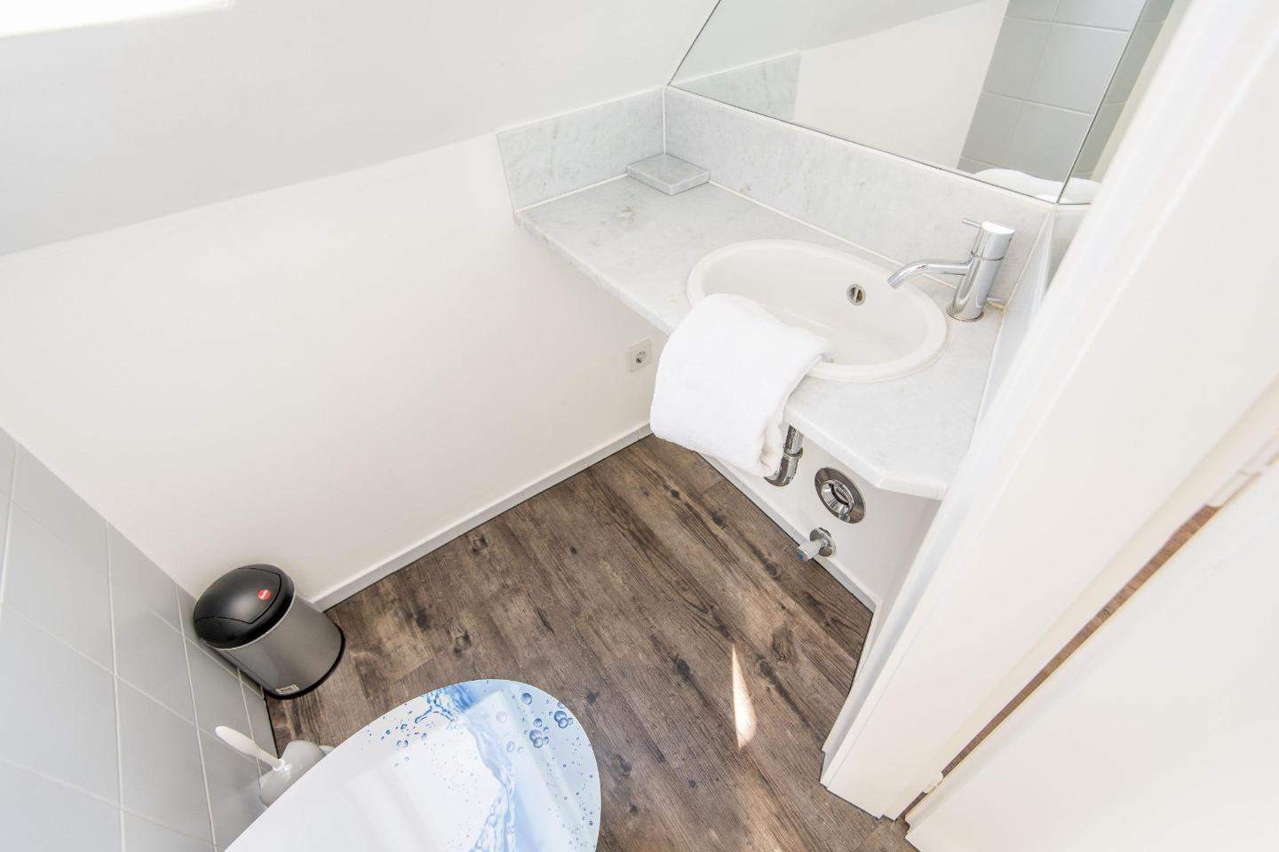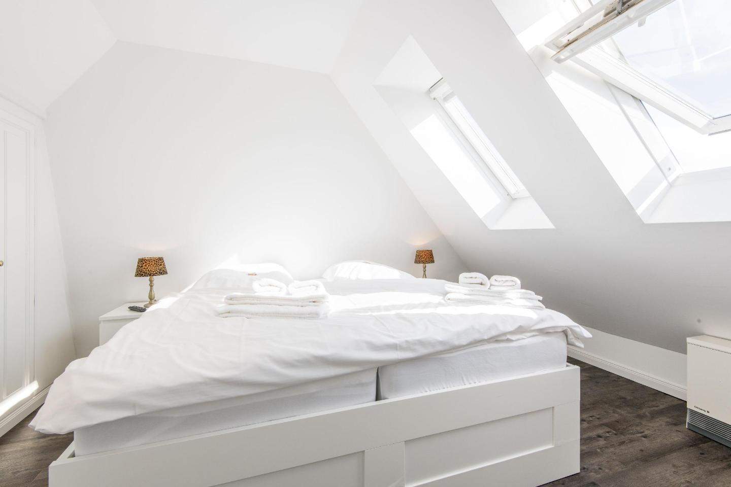 Schlafzimmer mit Doppelbett (2x 90x200cm), Einbauschrank und TV.En-Suite-Badezimmer (Duschbad) mit Dusche, Föhn und Tageslicht.