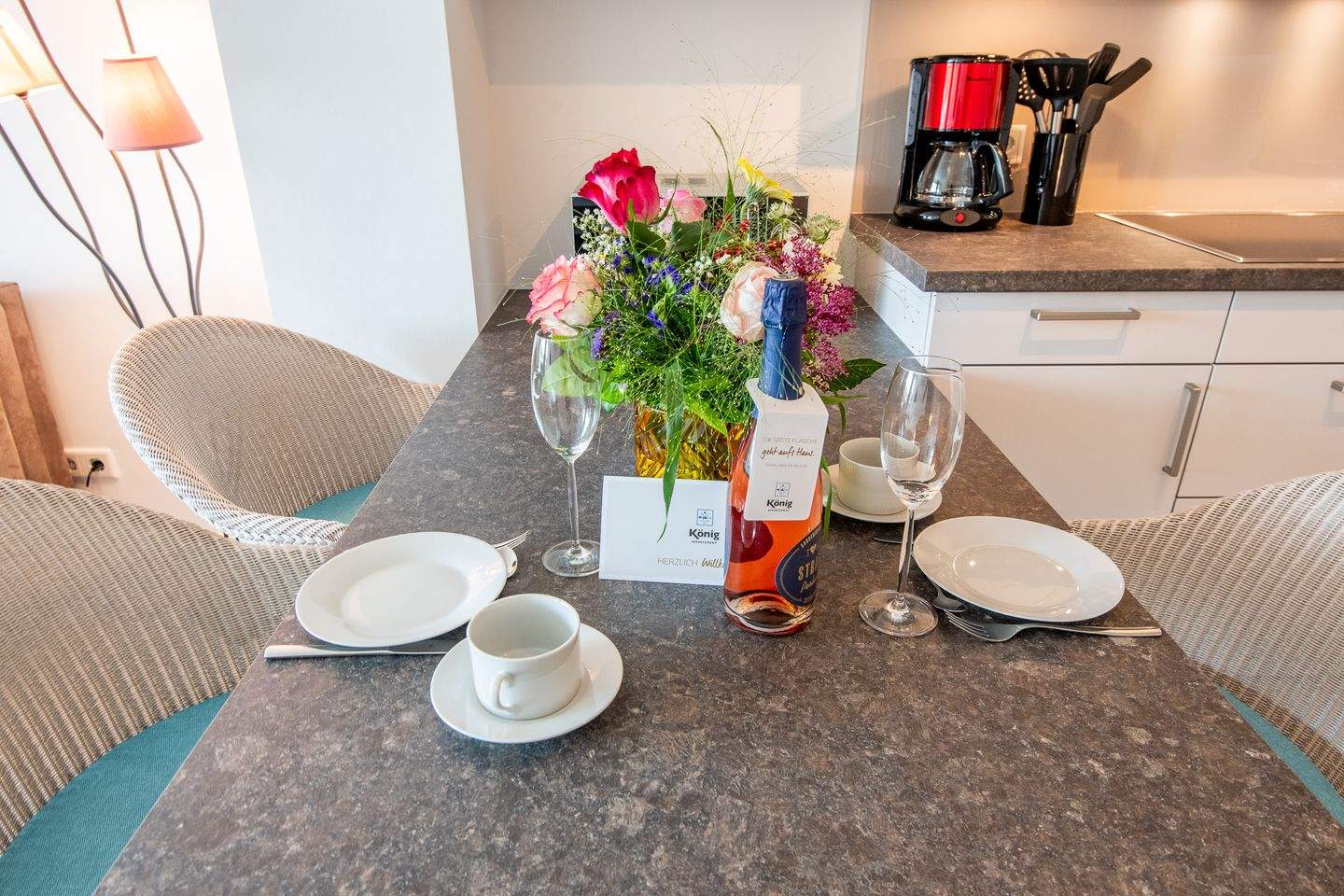 Die Wohnung befindet sich direkt an der Treppe zum Hafen und in der Nähe zur Kirche. Dadurch haben Sie eine hervorragende Ausgangslage, um die malerische Umgebung zu erkunden und die besondere Atmosphäre von Hörnum zu erleben. Genießen Sie Spaziergänge entlang der Küste, besuchen Sie den Hafen und entdecken Sie die charmanten Geschäfte und Restaurants in der Nähe.