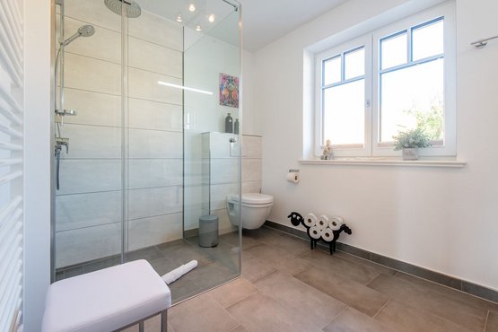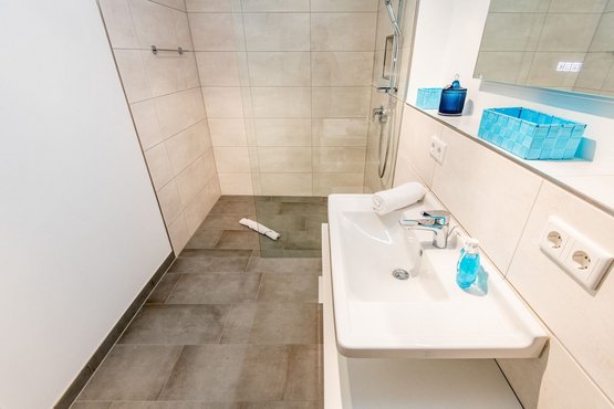 2. Badezimmer mit großer ebenerdiger Dusche und allem Komfort.