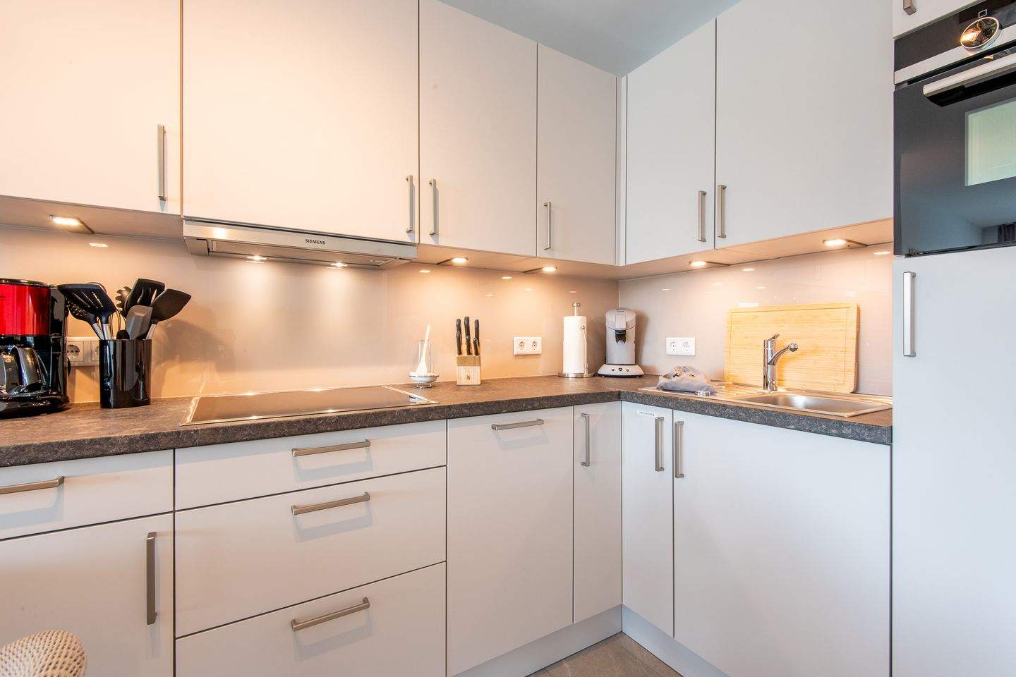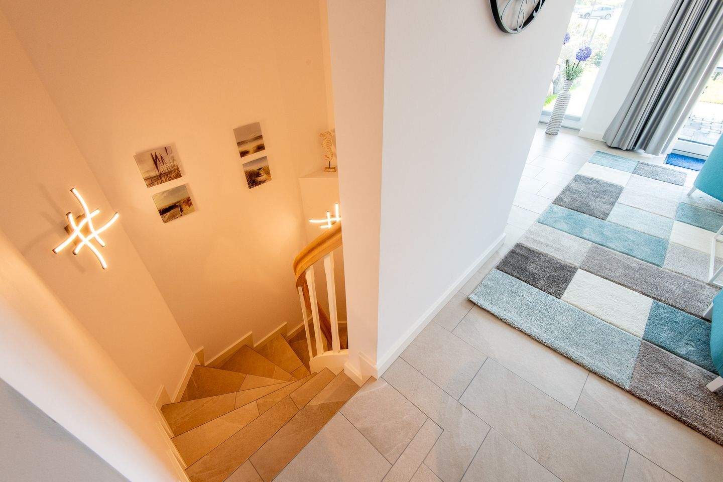 Im Erdgeschoss betreten Sie einen kleinen Flur, der Sie in den offenen Wohnbereich führt. Hier finden Sie eine offene moderne Küche, die zum Zubereiten köstlicher Mahlzeiten einlädt. Ausgestattet mit Geschirrspüler, Mikrowelle und allen notwendigem Komfort.