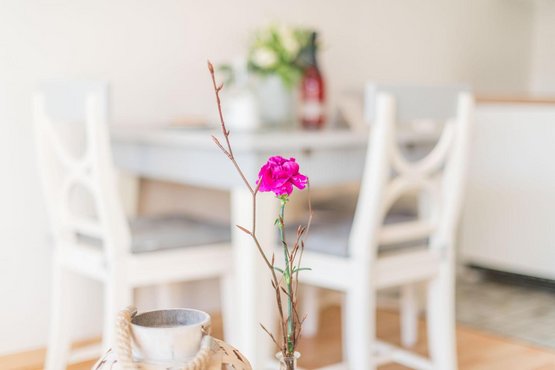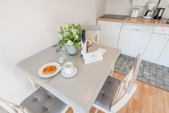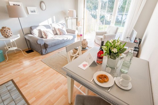Moderne 2-Zimmer-Ferienwohnung mit ca. 44 m² auf 1 Ebene (EG) für bis zu 4 Personen. Mit Terrasse nach Süden.