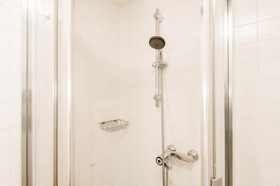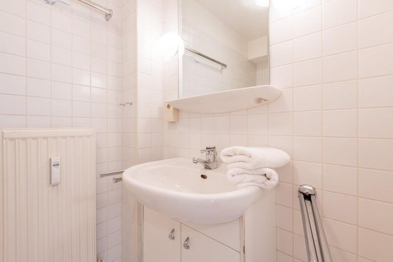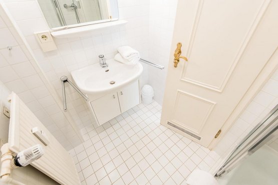 Badezimmer (Duschbad) mit Dusche, WC und Föhn.