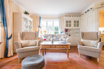 Großer eingewachsener Garten. Strandnahe Lage in Wenningstedt auf Sylt. Rauchen nicht gestattet. Komfortables Wohnzimmer mit Sofa, Sesseln, TV und großem Esstisch für 5 Personen. Direkter Zugang zur sonnigen Terrasse nach Süden und dem großen Garten mit Strandkörben.