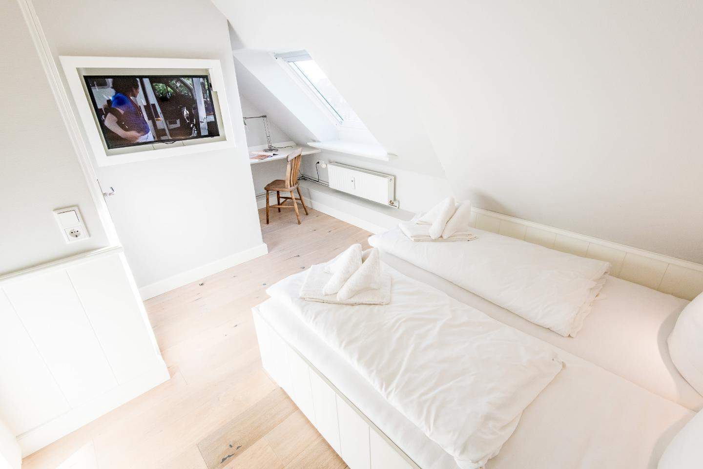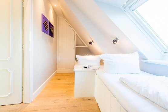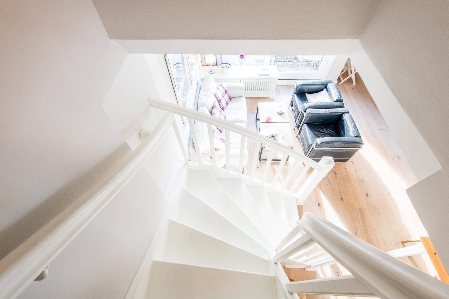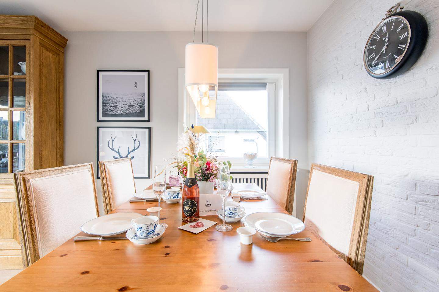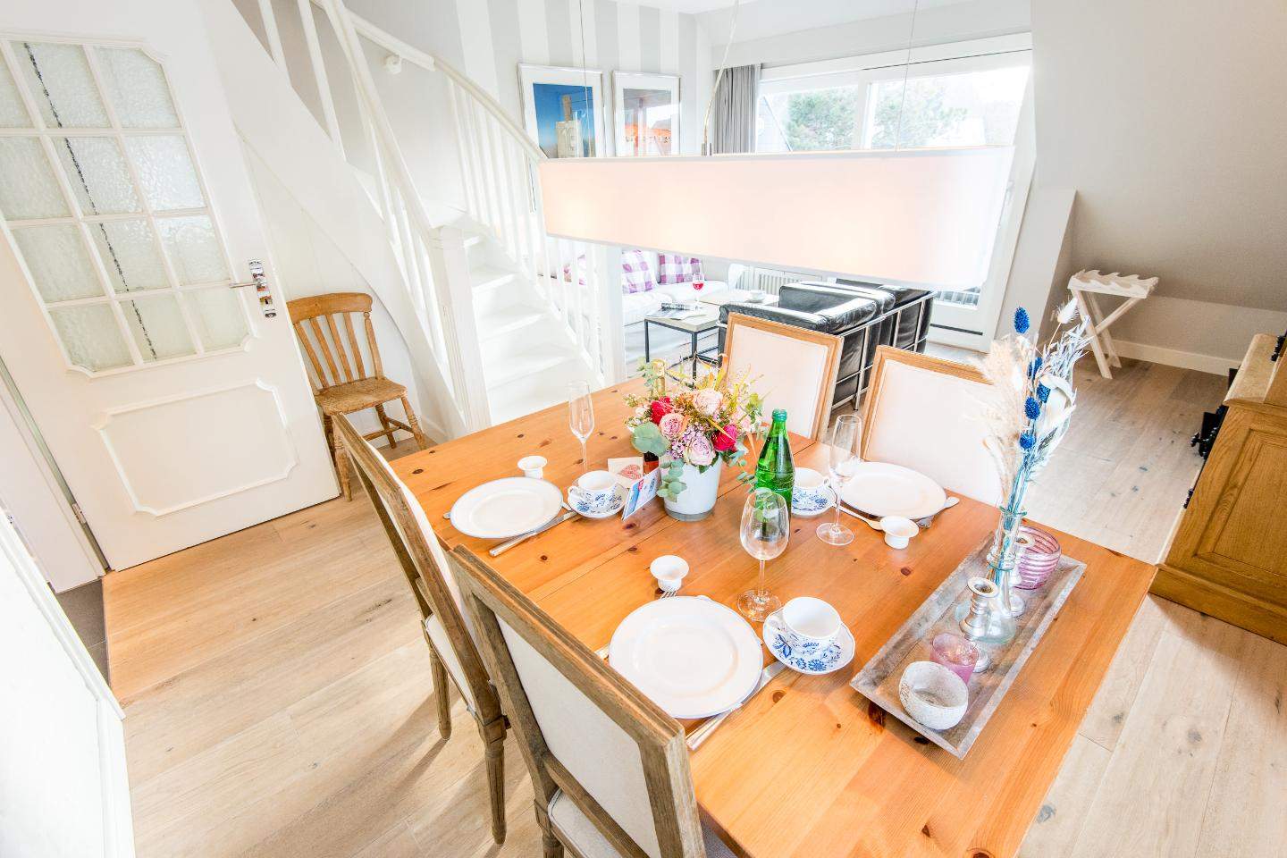 Lichtdurchflutete, moderne 3-Zimmer-Ferienwohnung mit ca. 58 m² auf 2 Ebenen (OG, DG) für bis zu 4 Personen. Strandnahe Lage in Wenningstedt auf Sylt, ideal für einen erholsamen Strandurlaub. Hochwertige Tischlereinbauten, Fenster in allen Räumen und helles Eichenparkett verbunden mit dem sonnigen Balkon zum Süd-Westen macht diese Wohnung besonders. Nichtraucherwohnung. Helles Wohnzimmer mit gemütlichem Sofa, 2 Sessel, Esstisch für 4 Personen, TV, Blu-ray-Recorder, Stereo-Anlage und direktem Zugang zum möblierten Balkon nach Südwest.