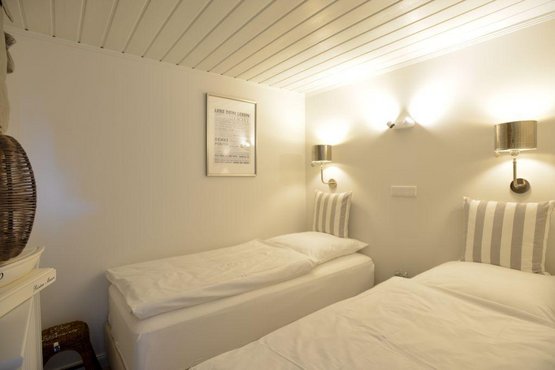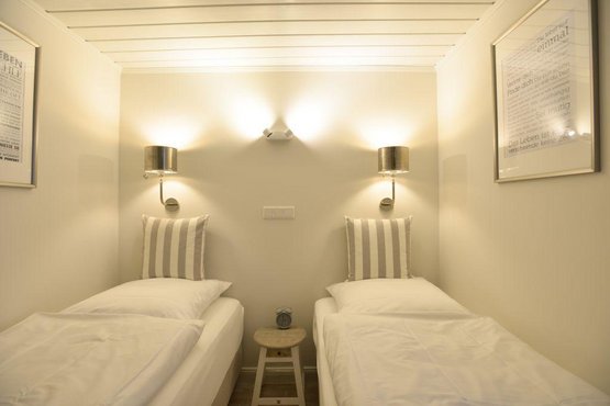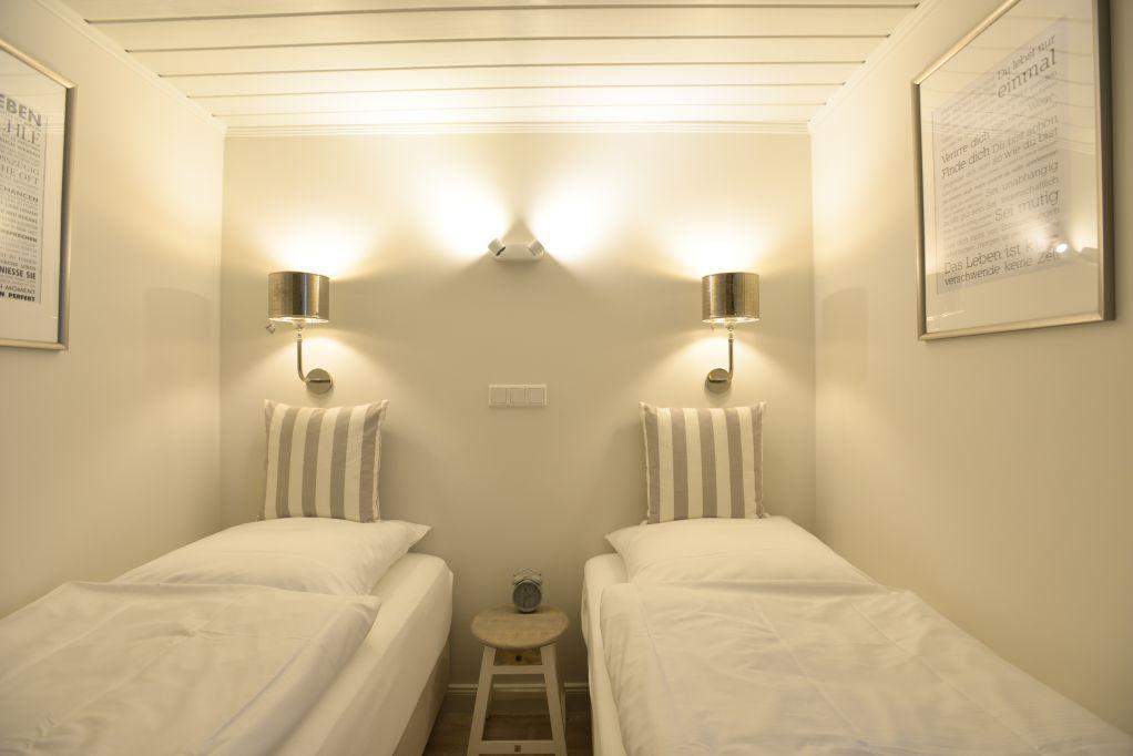 Schlafzimmer mit 2 zusammenschiebbaren Einzelbetten (je 90x200cm).