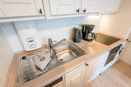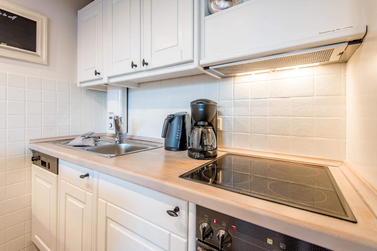 Offene Küche mit Cerankochfeld, Geschirrspüler, Filterkaffeemaschine und allem Komfort.