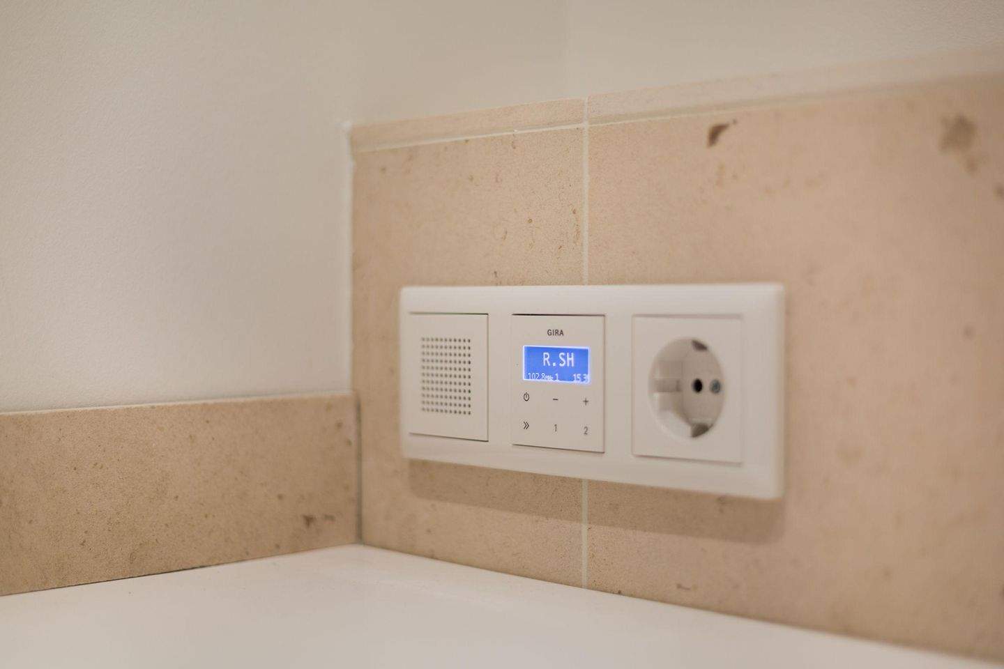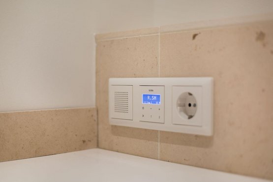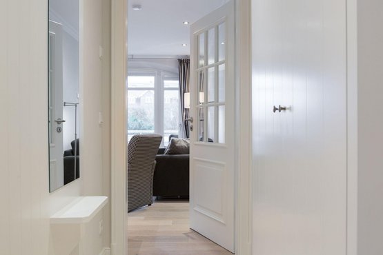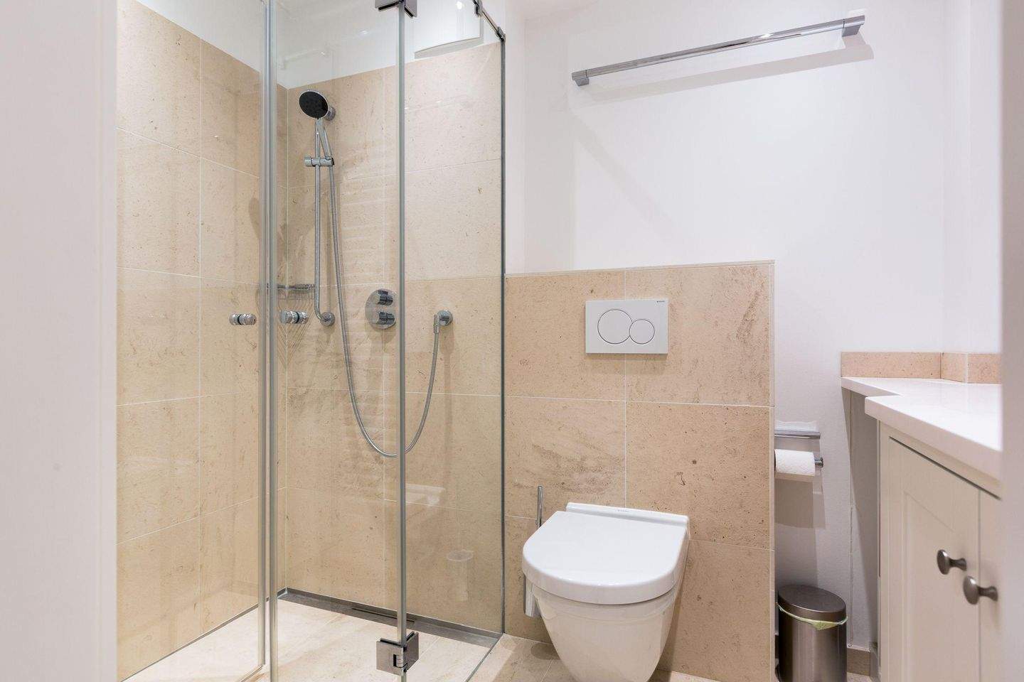 Flur mit Garderobe im Eingangsbereich. WLAN (ohne Gewähr) vorhanden. Gemeinschaftlichen Waschkeller mit Waschmaschine und Trockner. Gemeinschaftlicher Wellnessbereich mit Dampfsauna, finnischer Sauna und Schwalldusche. Das Haus verfügt über einen Fahrstuhl.