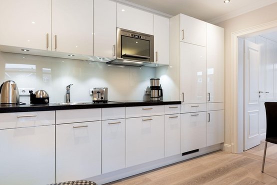 Offene Küche mit Mikrowelle, Geschirrspüler, Filterkaffeemaschine, Nespresso-Maschine, Cerankochfeld und allem modernen Komfort.