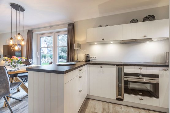 Offene Küche mit Geschirrspüler, Nespresso-Maschine, modernem Herd und allem Komfort.