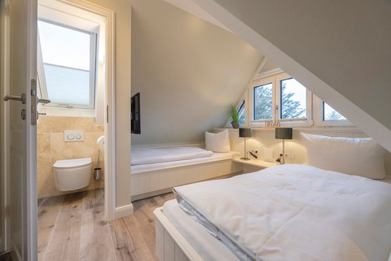 Exklusive Neubau Ferienhaushälfte mit ca. 95 m² (3 Räume) auf 3 Ebenen (EG, OG, DG) für bis zu 4 Personen.