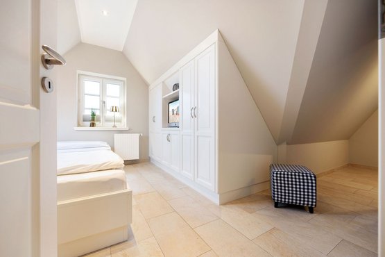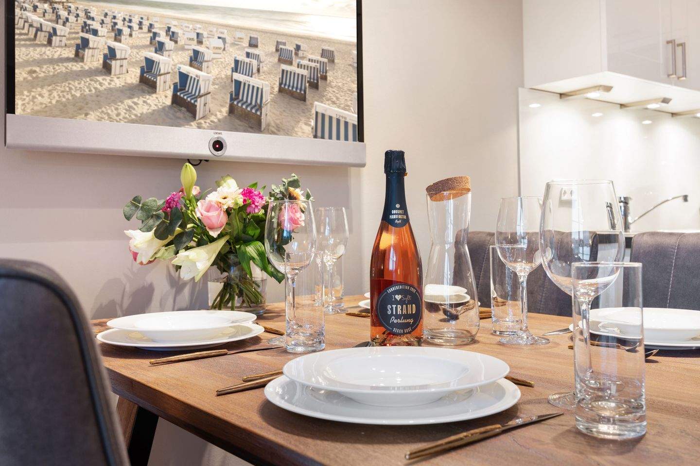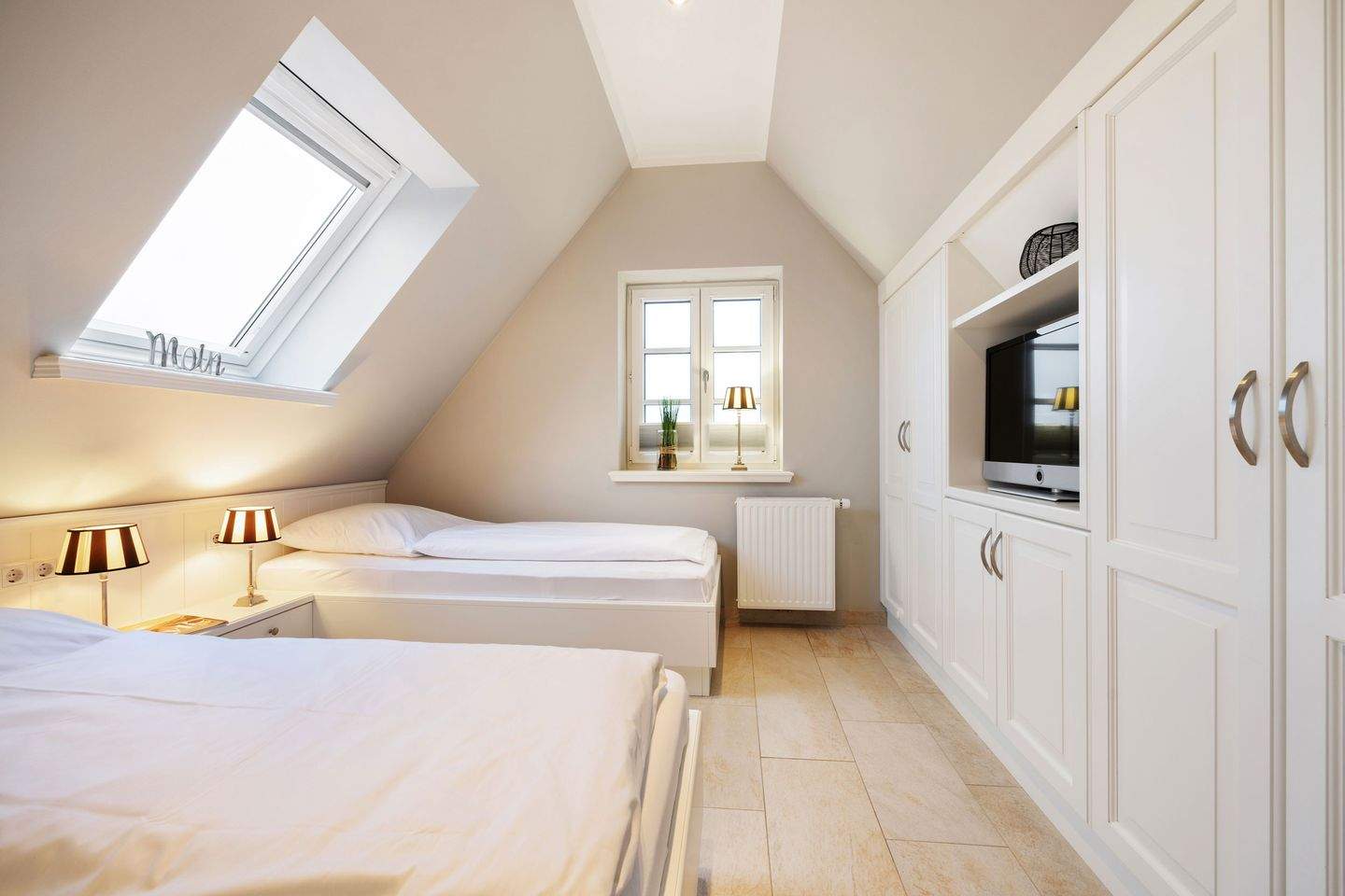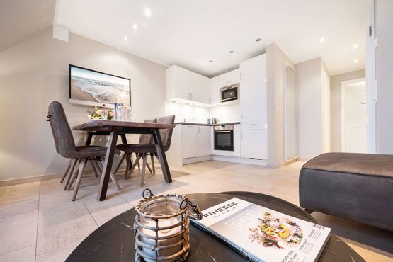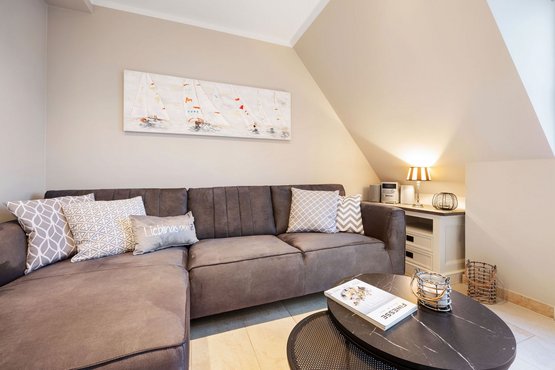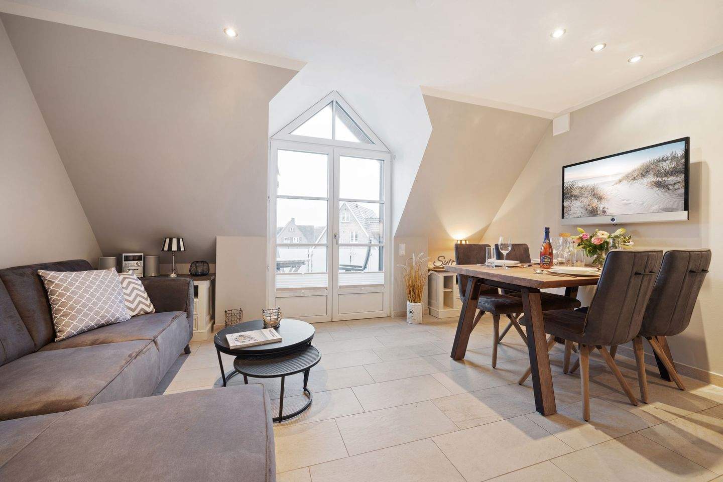 Exklusive, moderne 3-Zimmer-Ferienwohnung mit ca. 60 m² über 2 Ebenen (OG, DG) für bis zu 4 Personen. Sehr komfortabel, sehr strandnah, mit Balkon nach Westen.