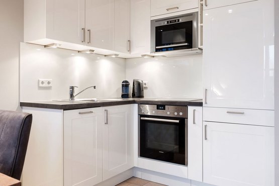 Offene Küche mit 4-flammigem Herd, Geschirrspüler und allem Komfort.