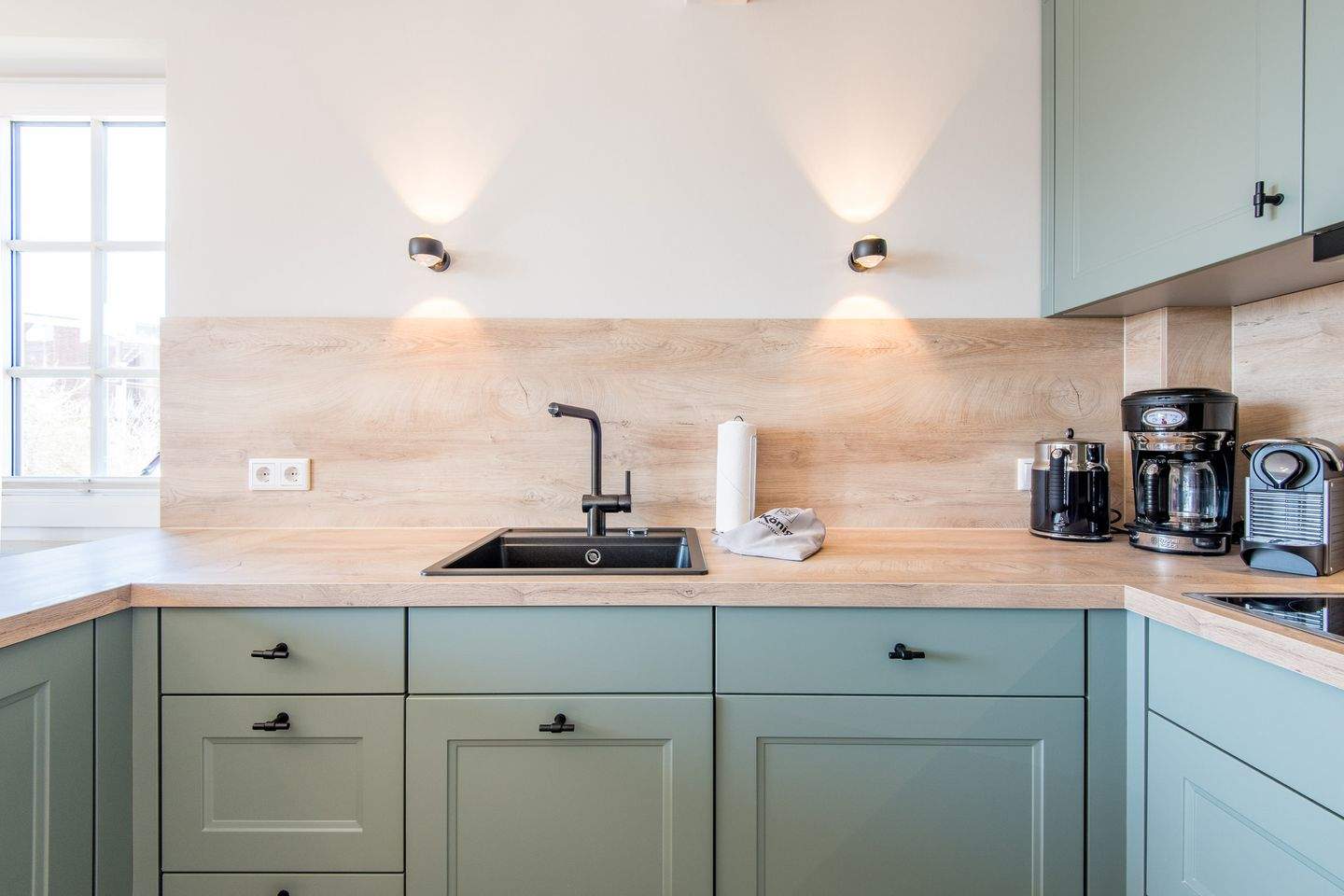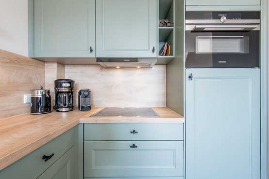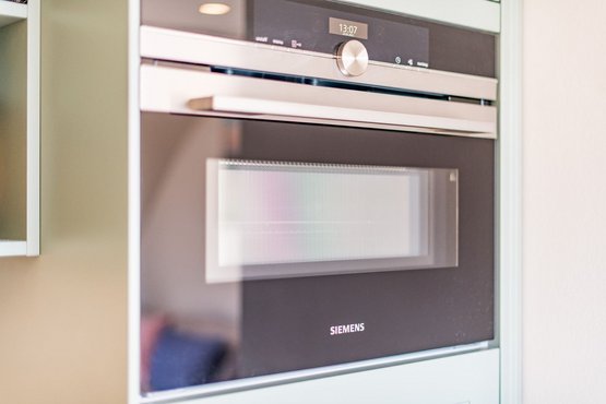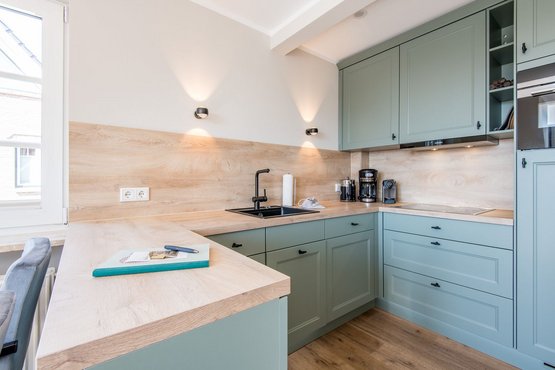 Moderne offene Küche mit Geschirrspüler, Backofen und allem Komfort.