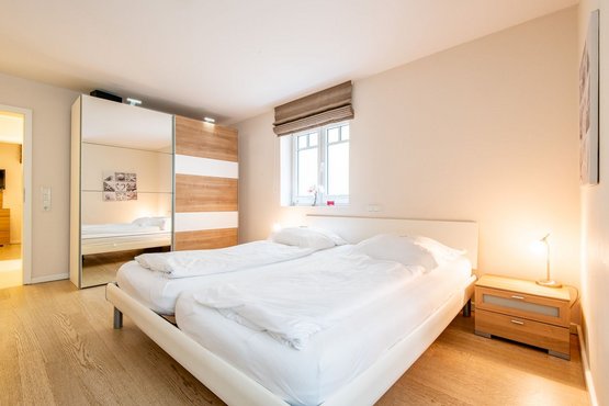 3. Schlafzimmer mit Doppelbett (2x 80x200cm), Kleiderschrank und TV.