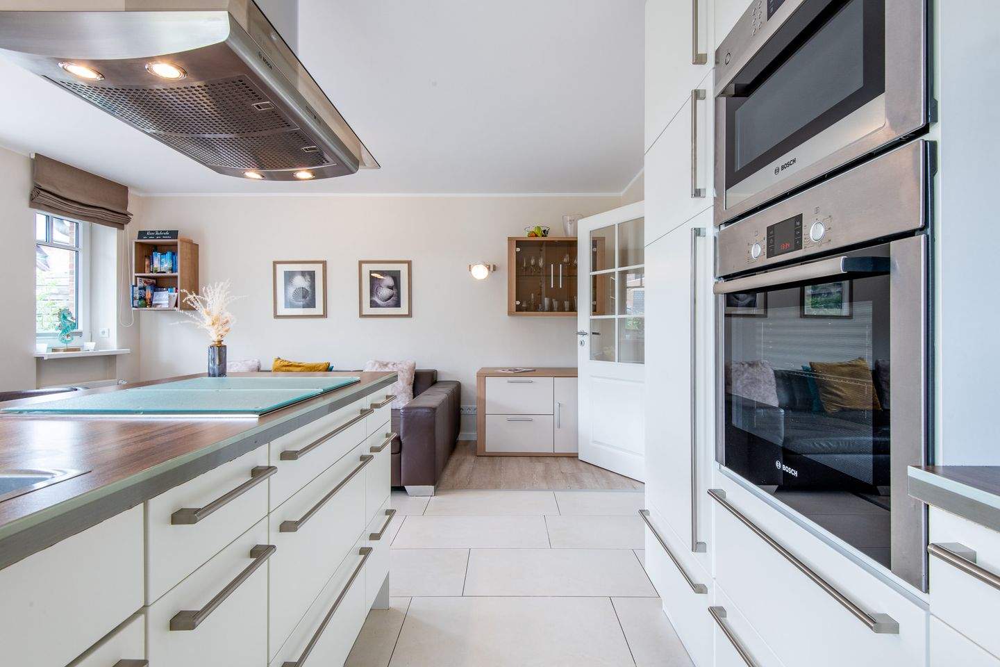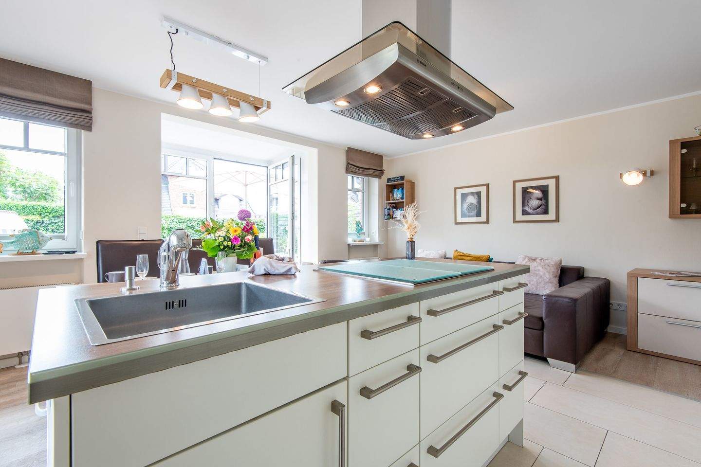 Offene Küche mit 4-flammigem Herd, Geschirrspüler, Nespresso-Maschine und allem Komfort.