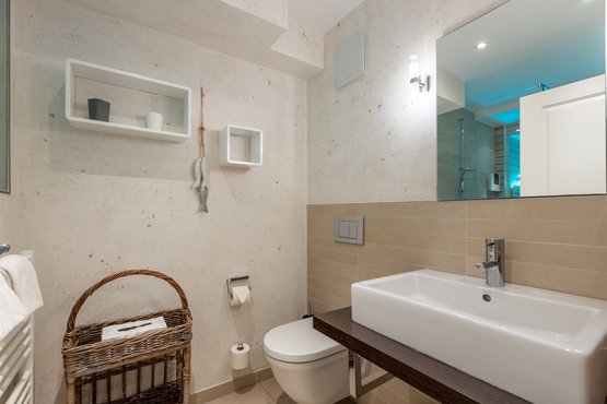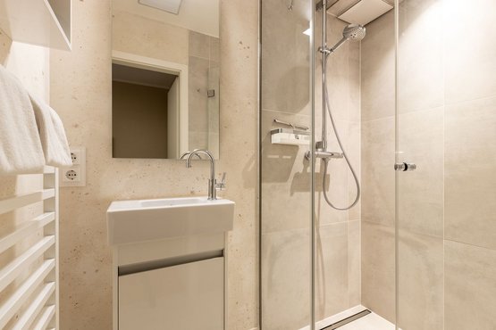 2. Badezimmer mit Regendusche und Handtuchwärmer.