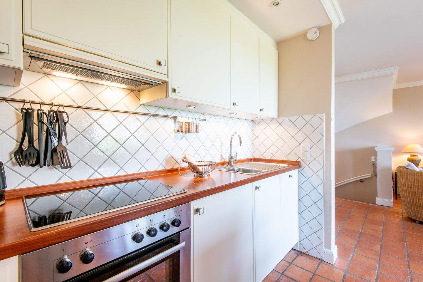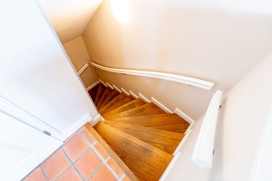 Im Erdgeschoss erwartet Sie ein gemütliches Wohnzimmer mit direktem Zugang zur Terrasse, von der aus Sie einen atemberaubenden Blick auf das Wattenmeer genießen können. Hier können Sie sich entspannen, die salzige Meeresluft einatmen und den Sonnenaufgang über dem Wasser bewundern. Die offene Küche lädt zum Kochen und geselligen Beisammensein ein, während das Gäste-WC für zusätzlichen Komfort sorgt.