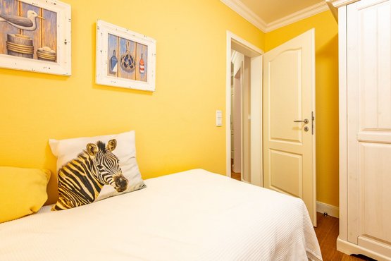 2. Schlafzimmer verfügt über zwei Einzelbetten (100x200) und ebenfalls einen Kleiderschrank. Hier können Kinder oder weitere Gäste eine erholsame Nacht verbringen.