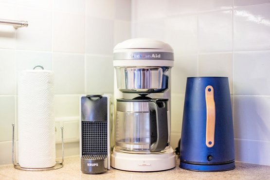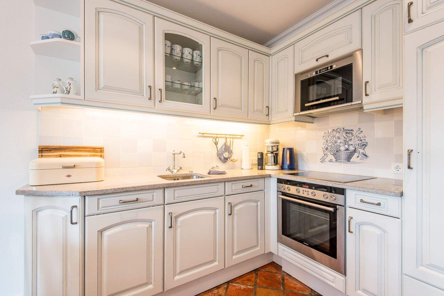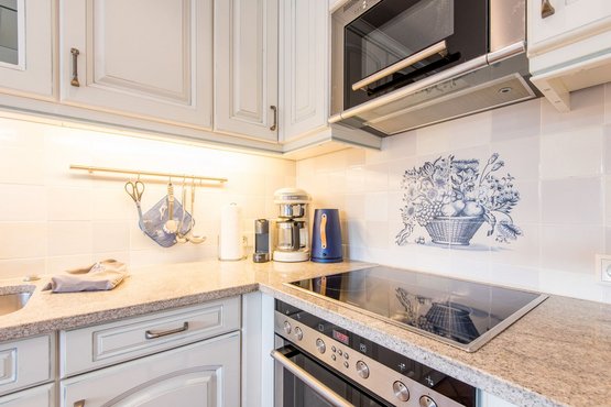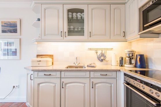 Offene Küche mit Filterkaffeemaschine, Geschirrspüler und allem Komfort.